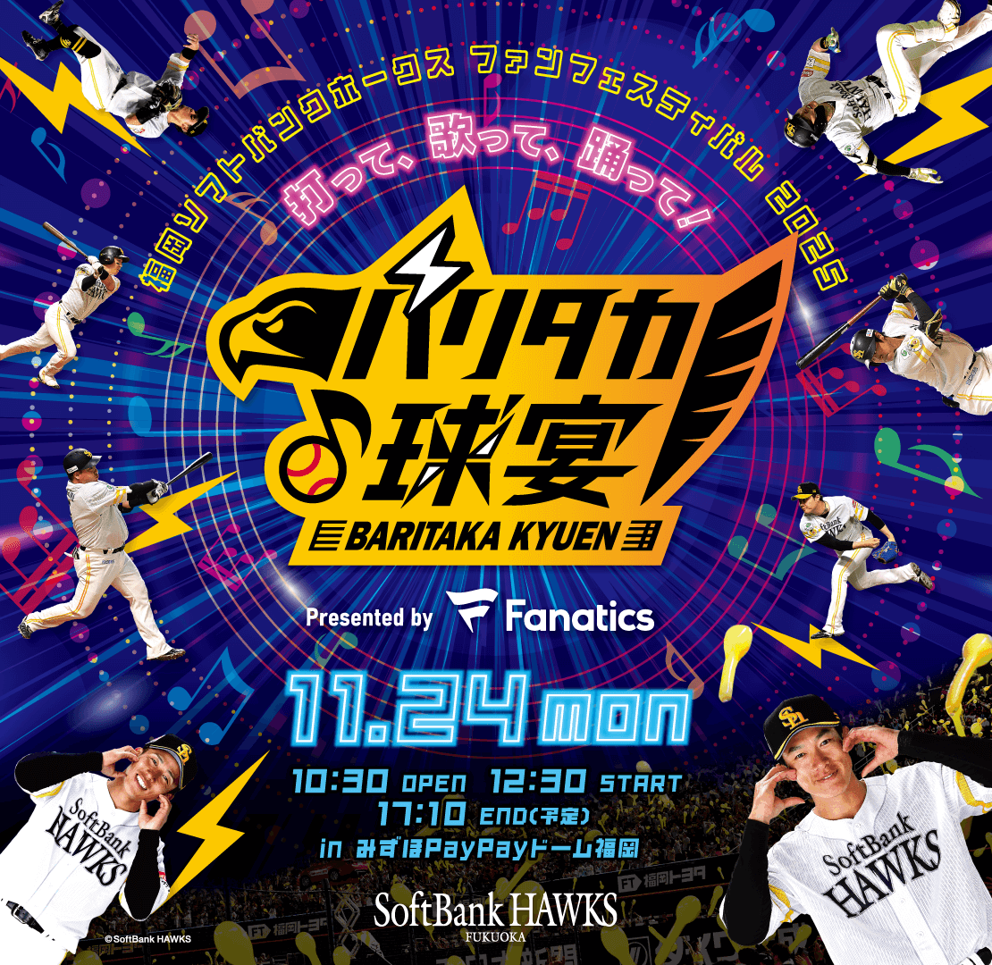 ただいま抽選で3組(6名様)に福岡ソフトバンクホークスファンフェスティバル2025「打って、歌って、踊って!バリタカ球宴 Presented by Fanatics」引換券をプレゼント!