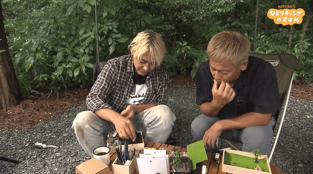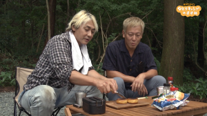 キャンプ飯「スペアリブの梅酒煮」を満喫したヒロシとじゅんダビが新企画に挑戦。