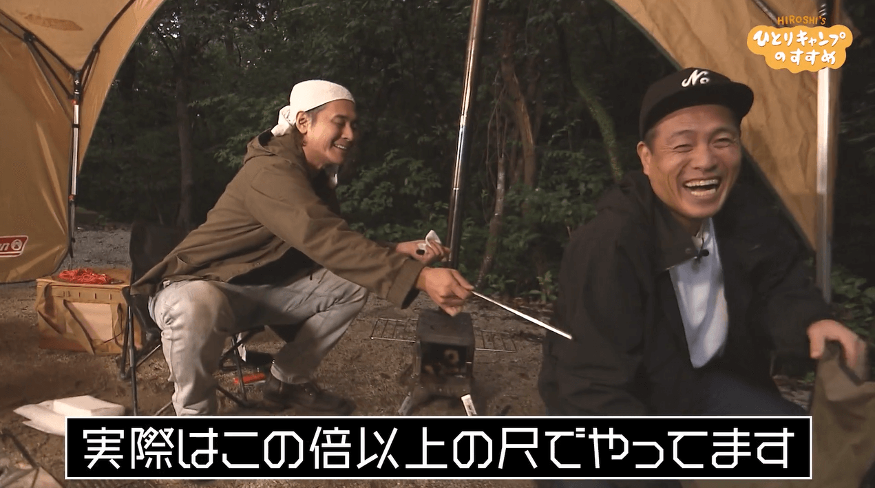 ヒロシが指南し設営から火起こしまでやってみるが・・・おふざけなしでできるかな?