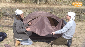 〝ぺぺを立派なキャンパーにしよう”とソロテントの設営を教え始めたヒロシだったが・・・