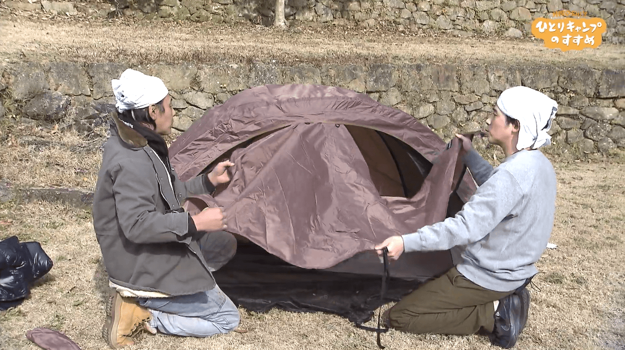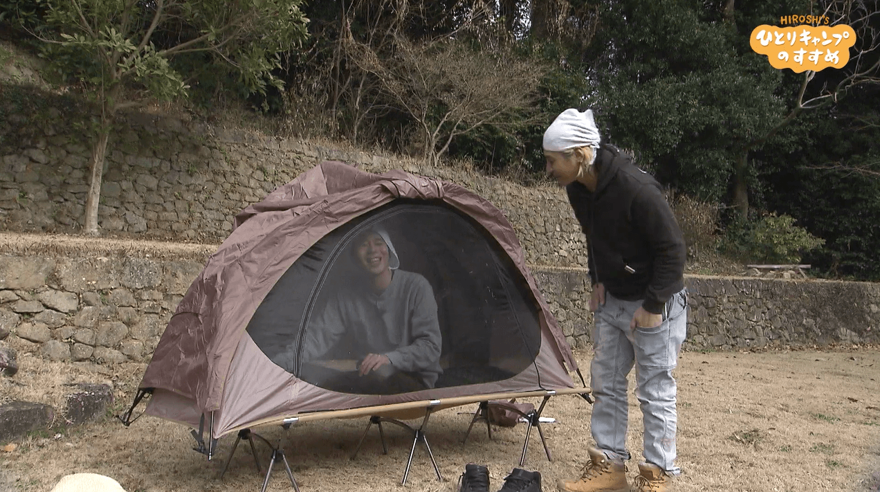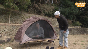 ヒロシの盟友でキャンプ初心者のパラシュート部隊・矢野ペペに、コットテントと