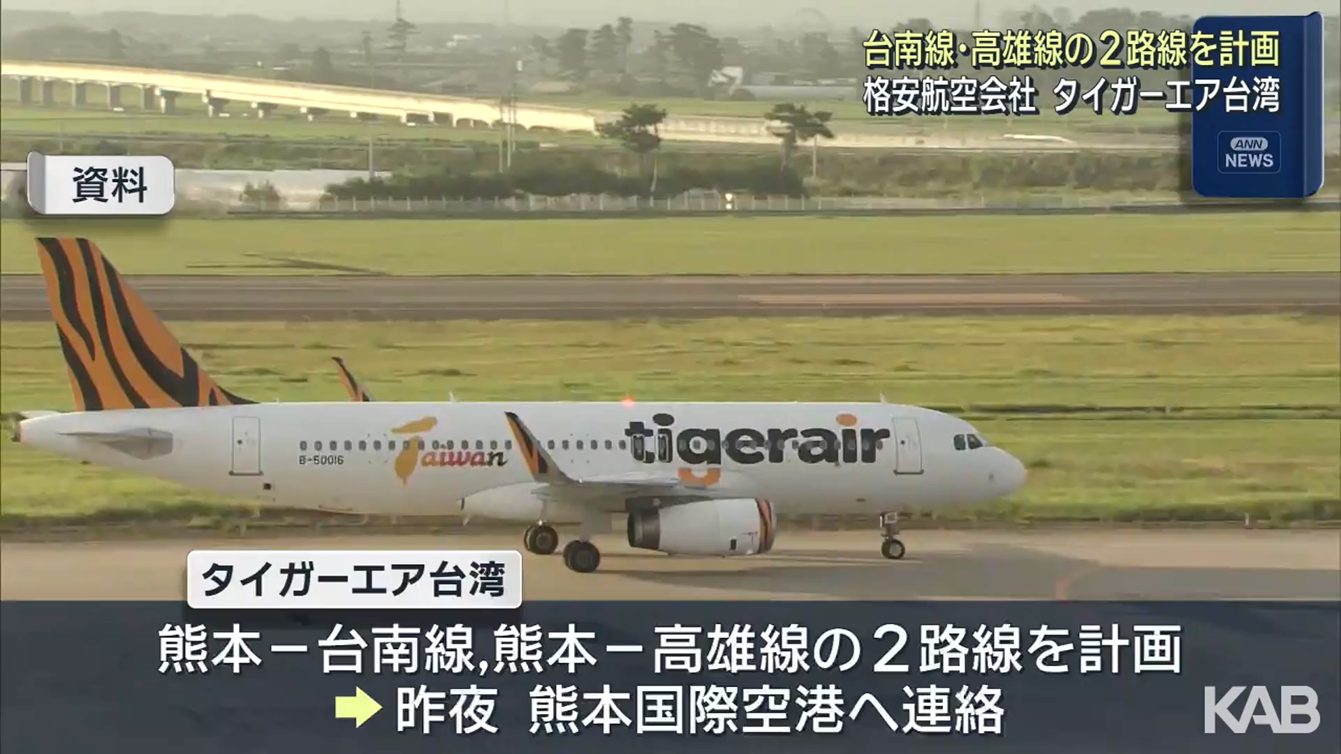 台湾の格安航空会社タイガーエア台湾が、初の路線となる熊本-台南線を含む2路線の運航を計画していることが分かりました。 熊本空港を運営する熊本国際空港によりますと、2日夜、タイガーエア台湾から熊本-台南線と熊本-高雄線の2路線の運航を計画していると連絡・..