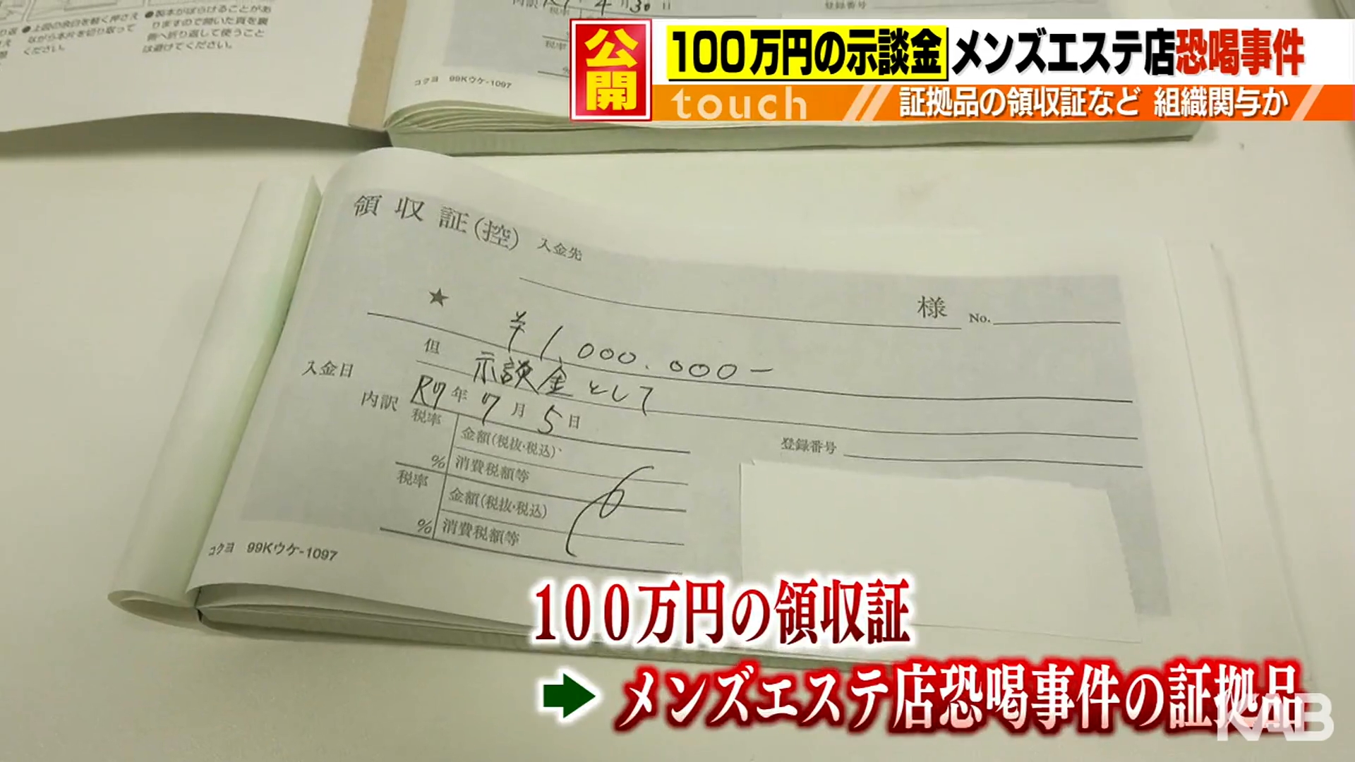 西日本各地で、メンズエステ店をめぐり犯行を繰り返していたとみられています。警察は、組織的な関与を視野に調べを進めています。 100万円の領収書の控え。ただし書きは「示談金」と書かれています。 西日本各地で繰り返されていたとされるメンズエステ店の恐喝事・..