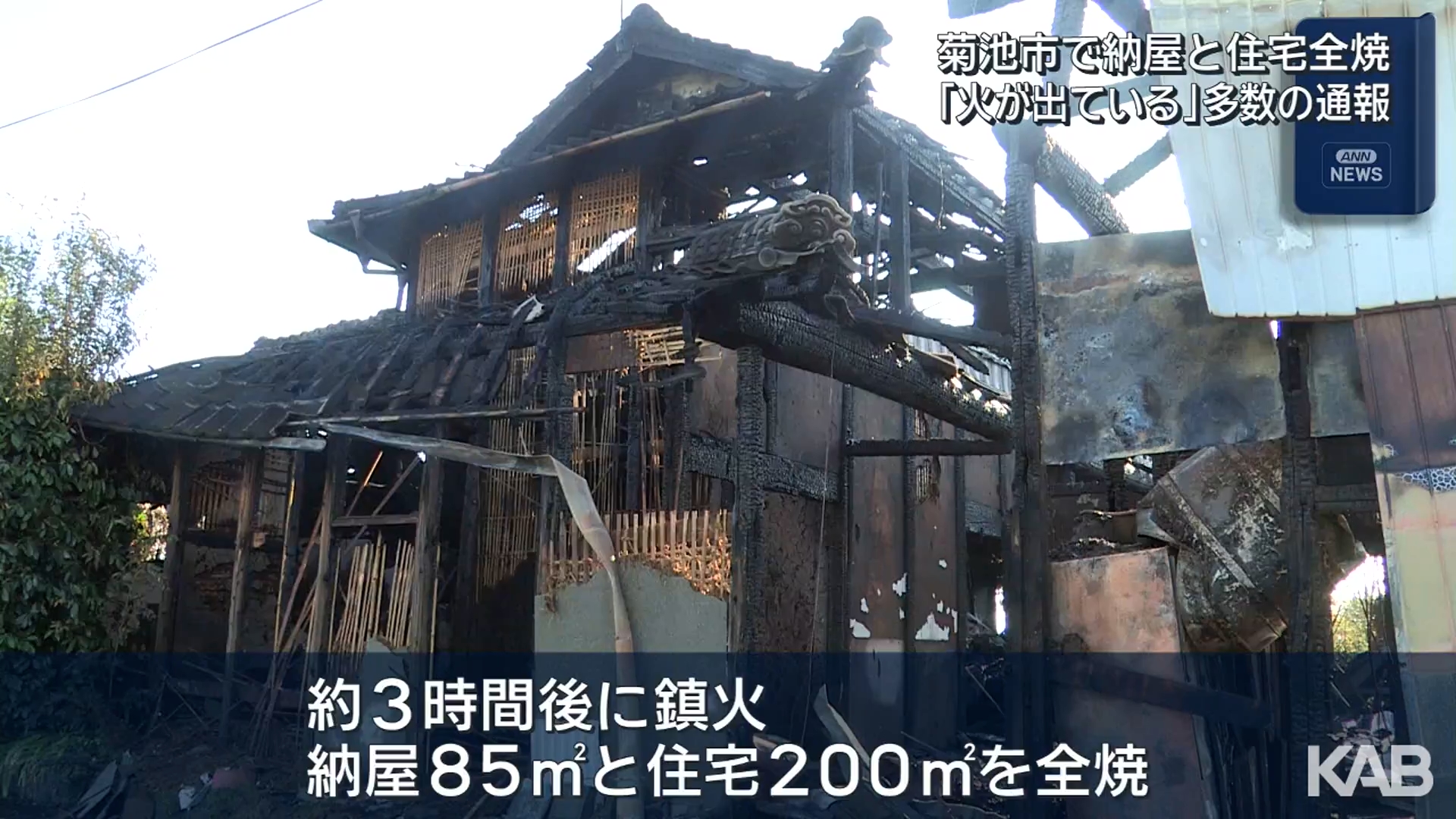 「納屋から火が出ている」菊池市で住宅と納屋を全焼