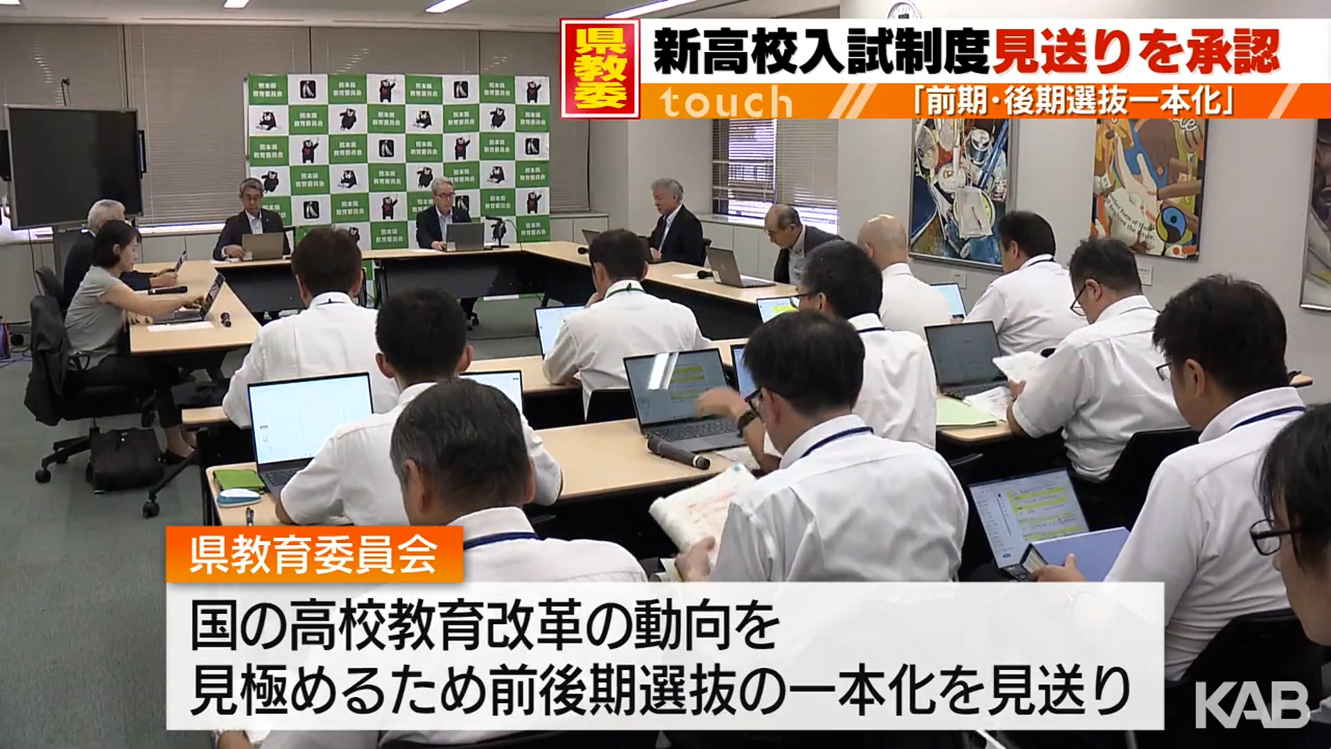 熊本県立高校入試の前後期選抜の一本化見送りについて、6日、県教委の委員会で承認されました。 2027年度の入学者選抜から、前期選抜と後期選抜を一本化したり特色選抜などを設けたりする新制度を導入する予定でしたが、「国の高校教育改革の動向を見極めるため」と・..