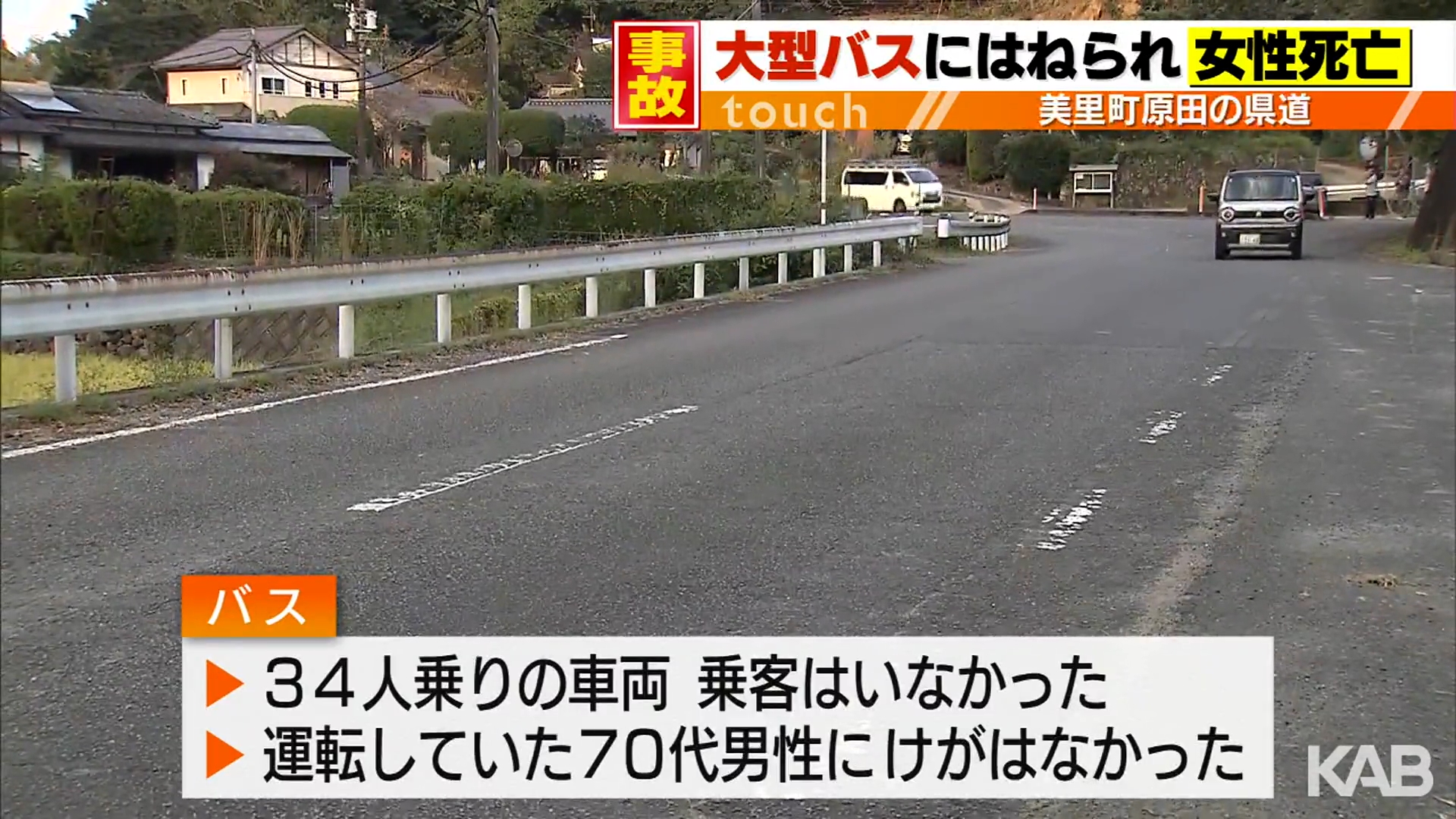 大型バスにはねられ80代女性が死亡 熊本・美里町の県道
