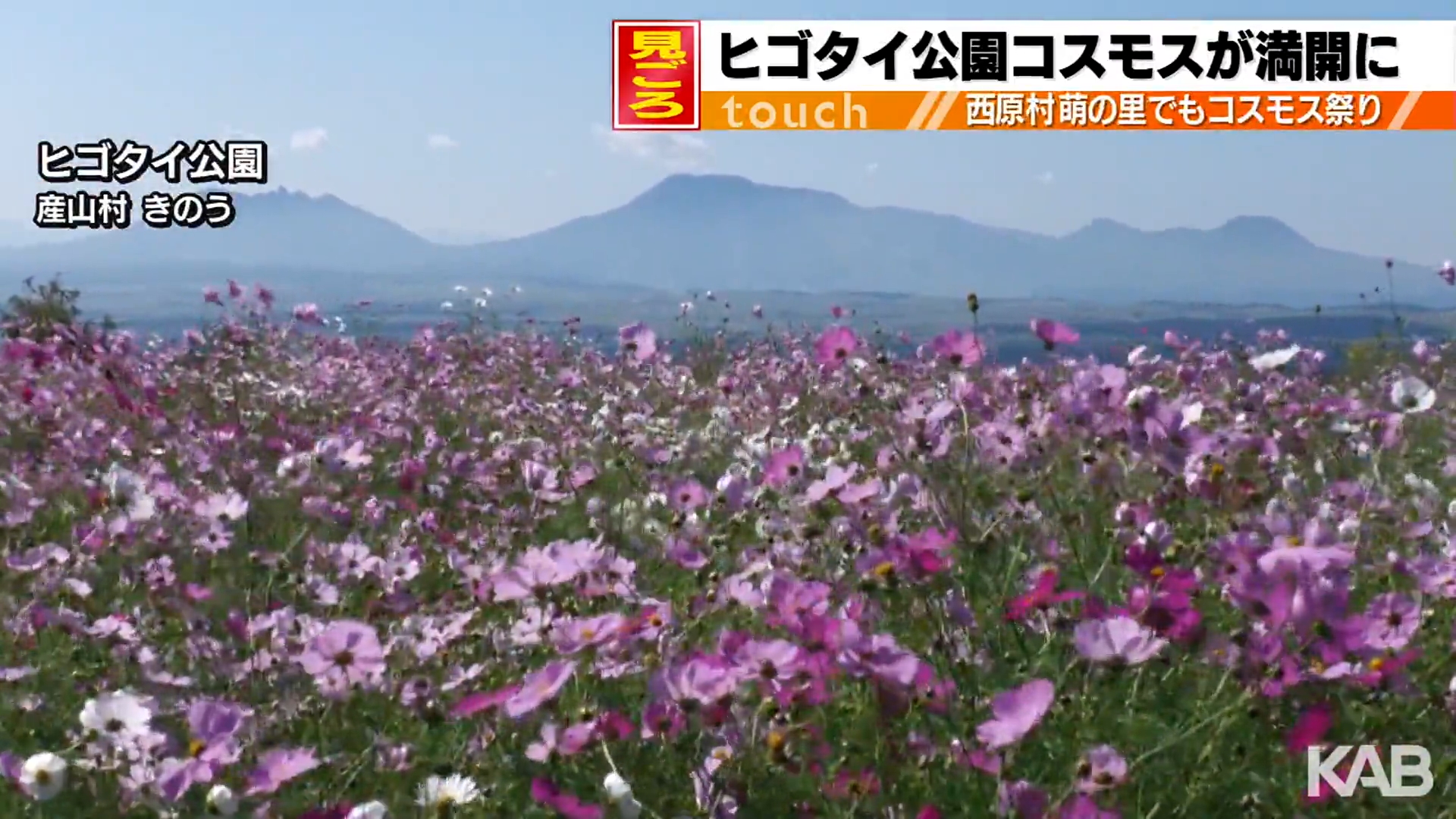 熊本県産山村のヒゴタイ公園で、ようやくコスモスの花が見ごろを迎えました。 標高900メートルの高原に満開のコスモスが広がり、秋の涼しい風に揺れています。 花畑の向こうには、阿蘇五岳を望む絶景が広がっていて、訪れた人たちがのんびりと過ごしていました。 ・..