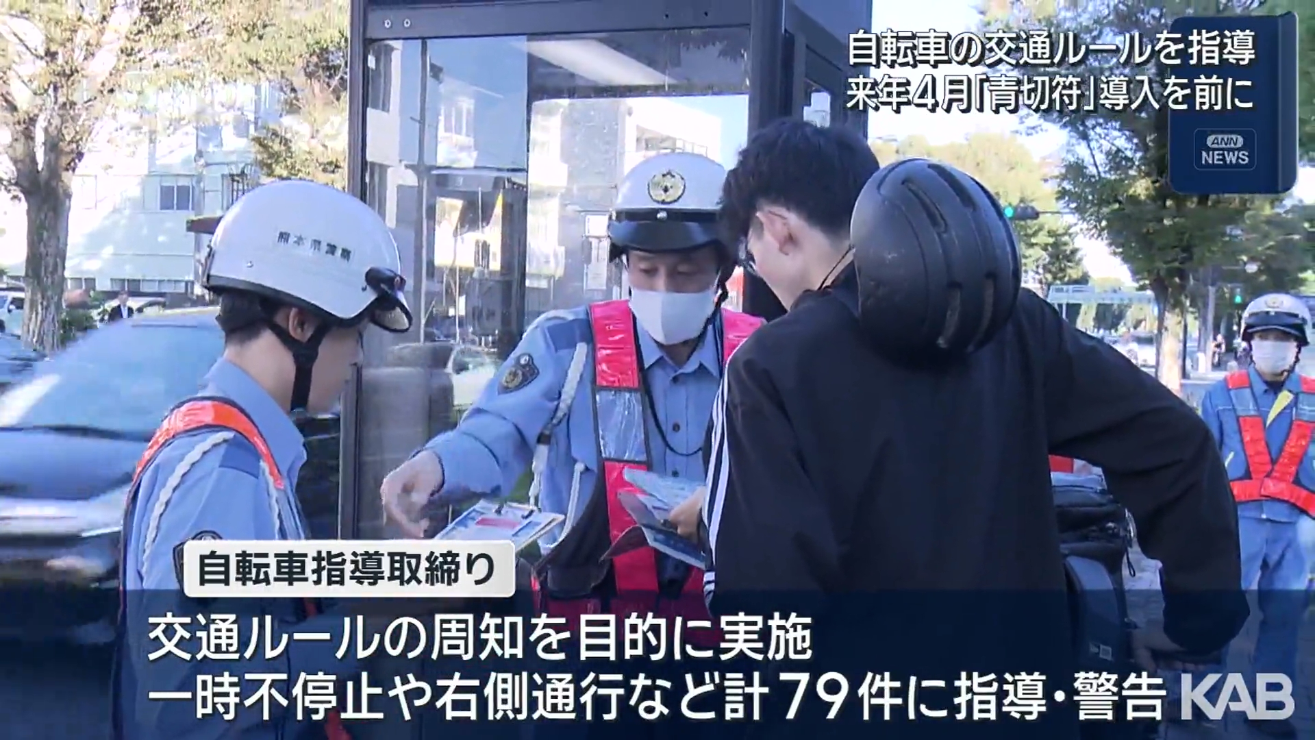 自転車の交通違反に対し、反則金の支払いを求める「青切符」の取り締まりが始まるのを前に、9日朝、熊本市で自転車利用者への交通指導が実施されました。 来年4月から始まる自転車の交通違反に対する「青切符」制度は、携帯電話を使いながらの運転や、車道の右側通行...