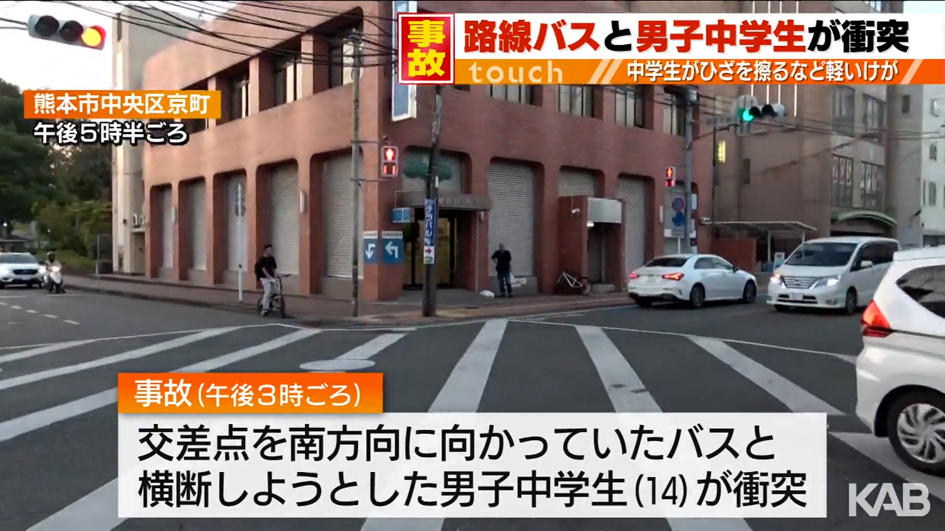 熊本市で路線バスが道路横断中の中学生と衝突 中学生は軽傷