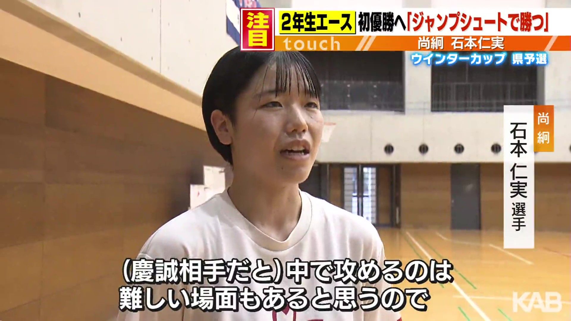 尚絅のエース・石本仁実選手。172センチの長身を生かしたストップジャンプシュートを軸に、県外の強豪校との試合では1試合平均およそ20得点と攻撃陣を牽引。悲願の県予選初優勝へ導きます。