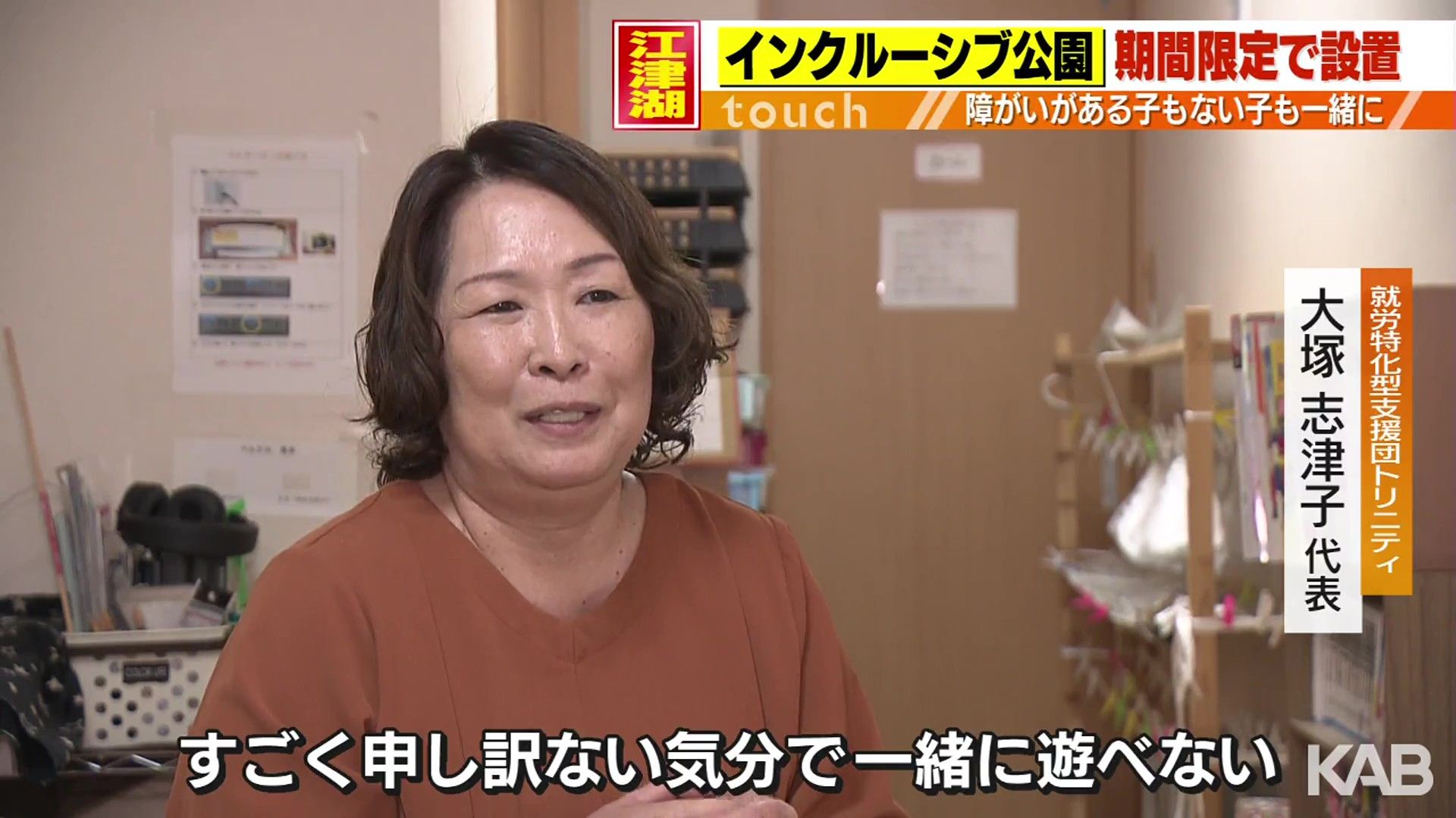 この公園の設置を実現させた大塚志津子さん。3人の子どもの母親で、熊本県御船町で発達障がい者を支援するためのNPO法人の代表を務めています。