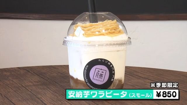 また、「ワラビータ」と名付けたわらび餅のドリンクも。ミシュランシェフとタイアップした自信作で、季節限定の「安納芋ワラビータ」は、安納芋ペーストの風味とわらび餅の絶妙な組み合わせが楽しめます。