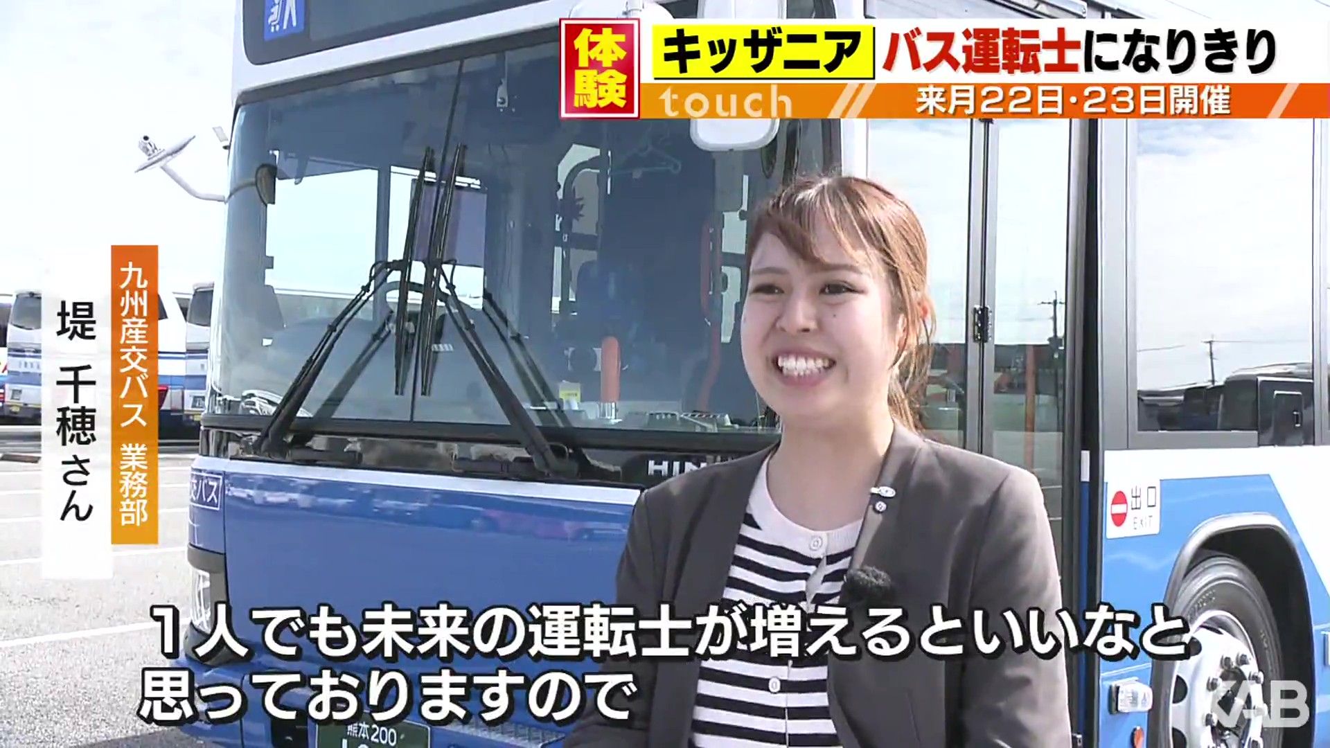 出展する企業の1つ九州産交バス。グループ全体の従業員は1060人で、熊本県内のほぼ全域をカバーする路線バスネットワークを展開しています。