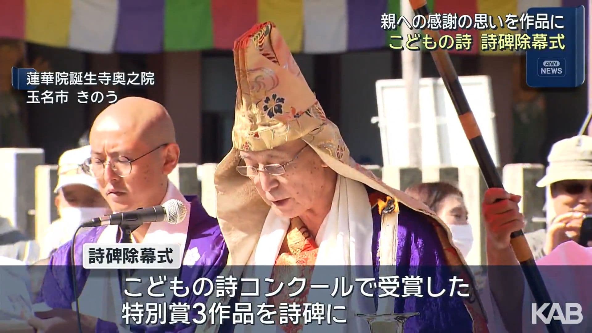 「こどもの詩コンクール」特別賞の3作品が詩碑に 蓮華院誕生寺奥之院
