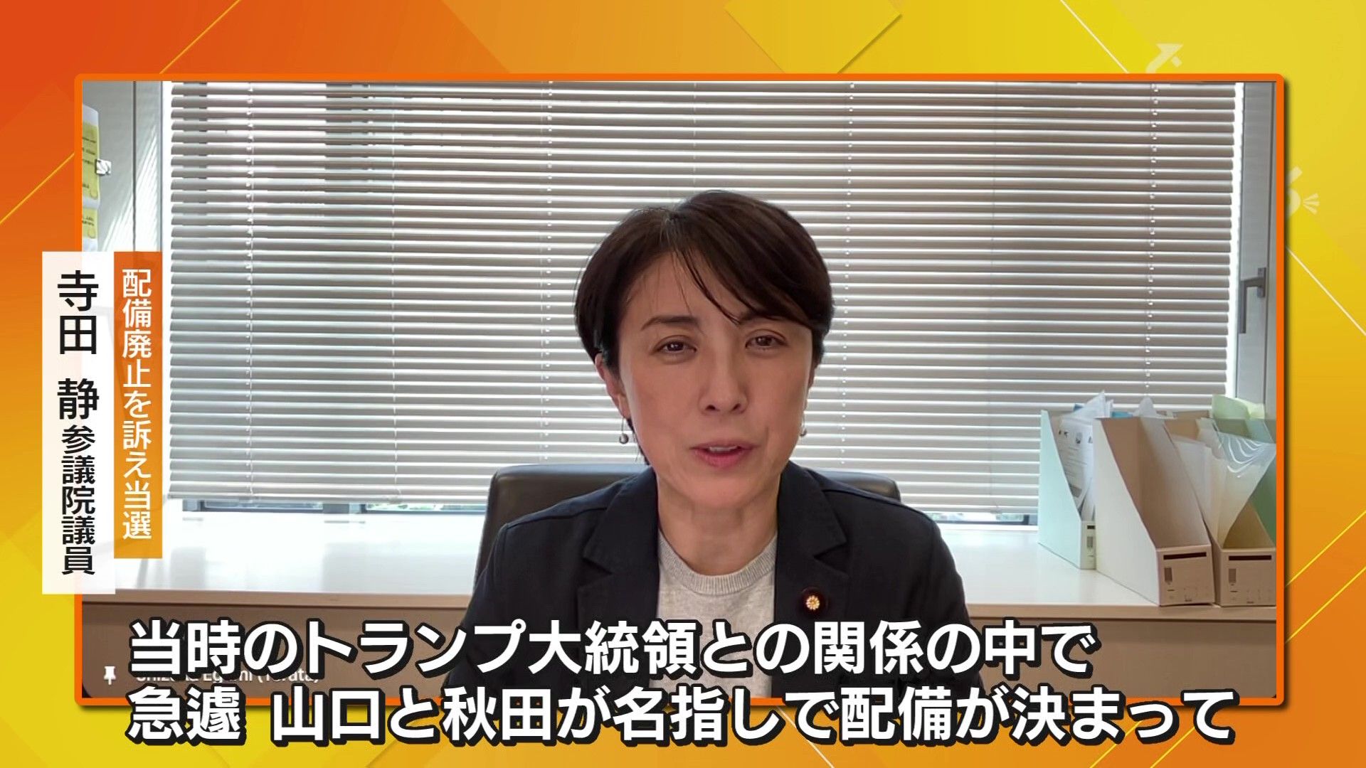 当時、イージス・アショア配備廃止を訴えて参院選秋田選挙区で初当選した寺田静議員に話を聞きました。