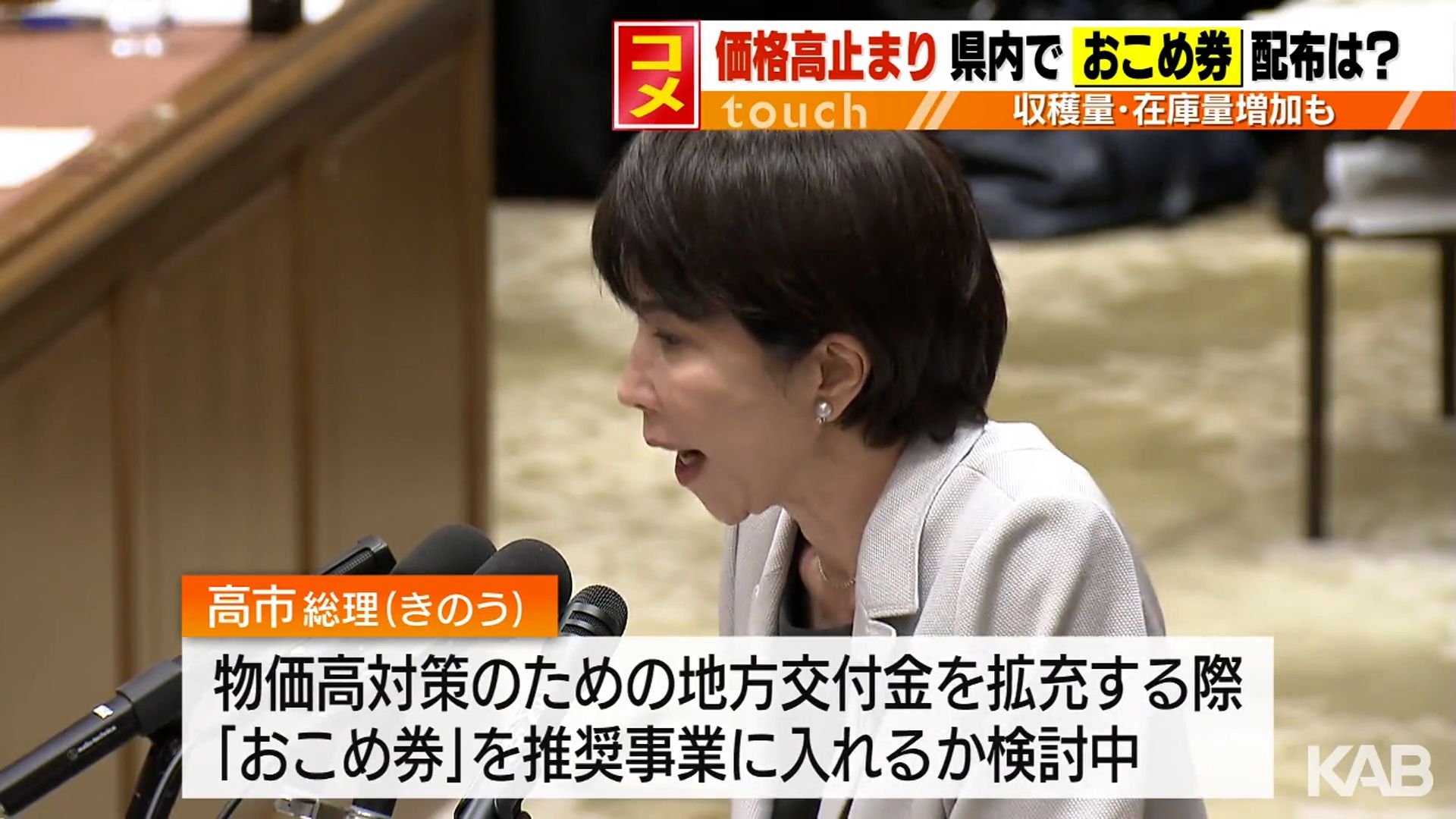 高市総理「おこめ券を重点支援地方交付金の推奨事業メニューに入れるかどうかということを含めて、それも含めて検討を深めているというところです」