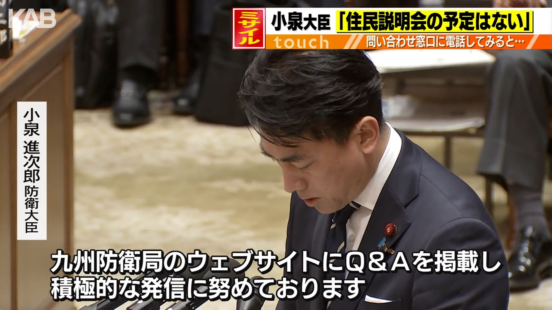 「九州防衛局において問い合わせ窓口を設置し、質問に逐次こたえるなど対応しているほか、九州防衛局のウェブサイトにQ&Aを掲載することにより、すでに積極的な発信に努めております。こうした取り組みを行っている中、現時点において住民説明会を実施する予定はありません」