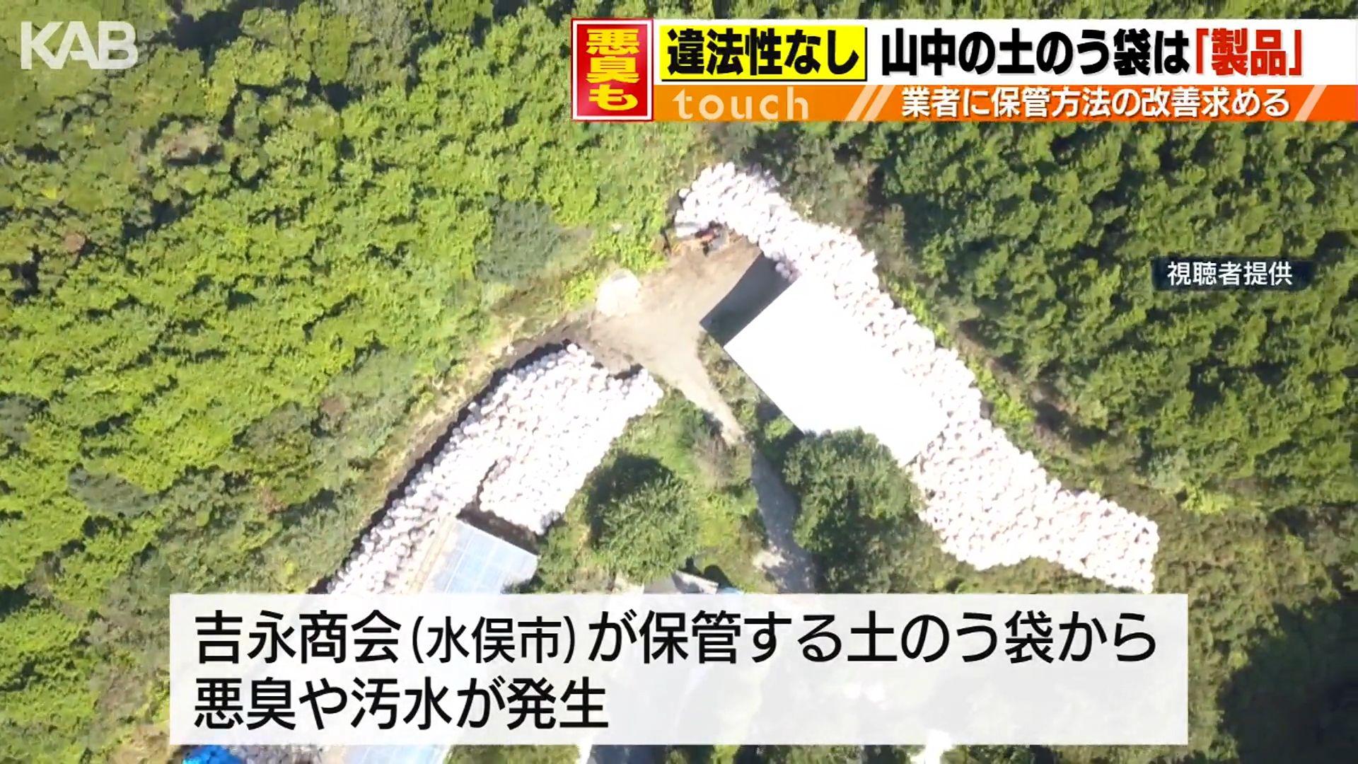 熊本県芦北町の山中に保管された土のう袋から発生する悪臭などをめぐる問題で、熊本県は違法性はないという見解を示した一方で、適切な管理を求めていくとしました。