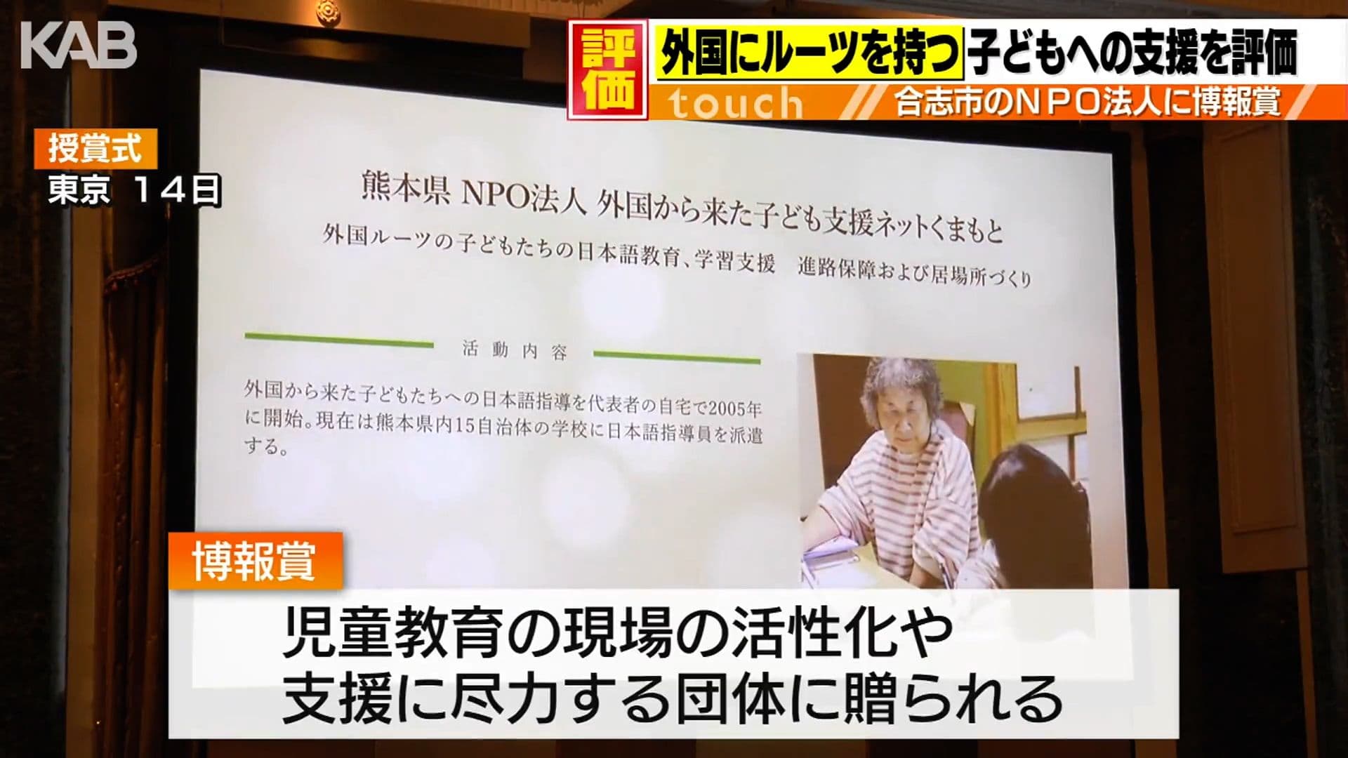 「外国から来た子ども支援ネットくまもと」博報賞の功労賞に