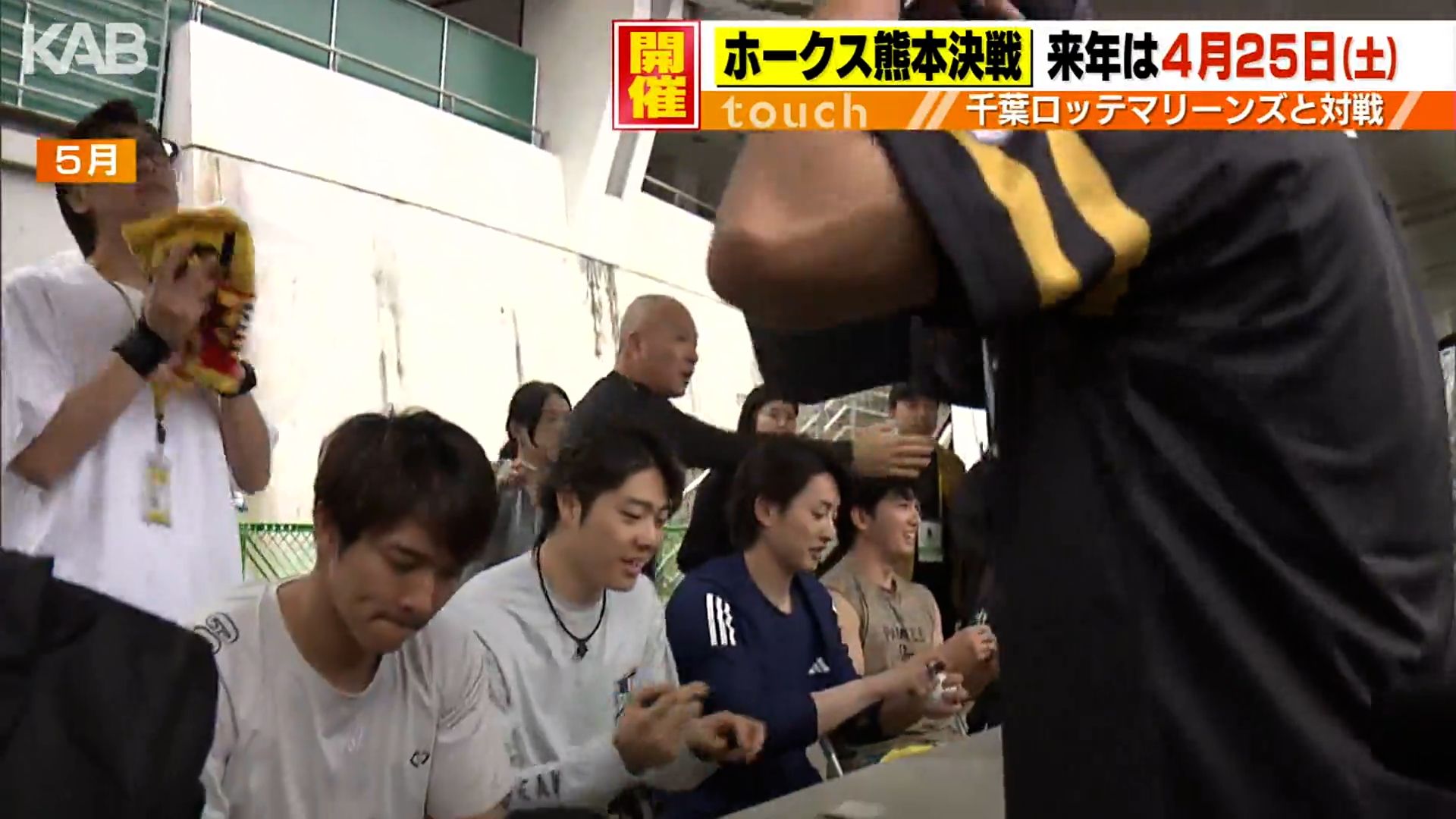 今年の熊本決戦は雨で中止となりましたが、即席のサイン会が開かれ選手とファンが交流しました。