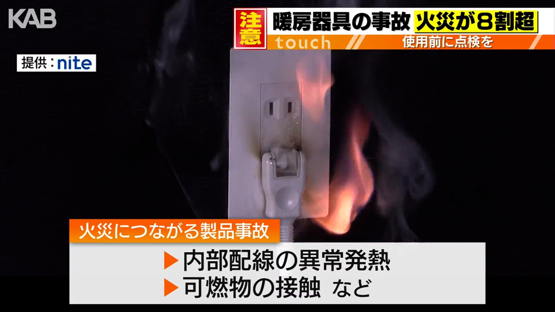 内部配線の不具合で異常に発熱したケースや可燃物が接触し火災が発生したケースが確認されていて、事故は毎年11月頃から増加する傾向にあるということです。
