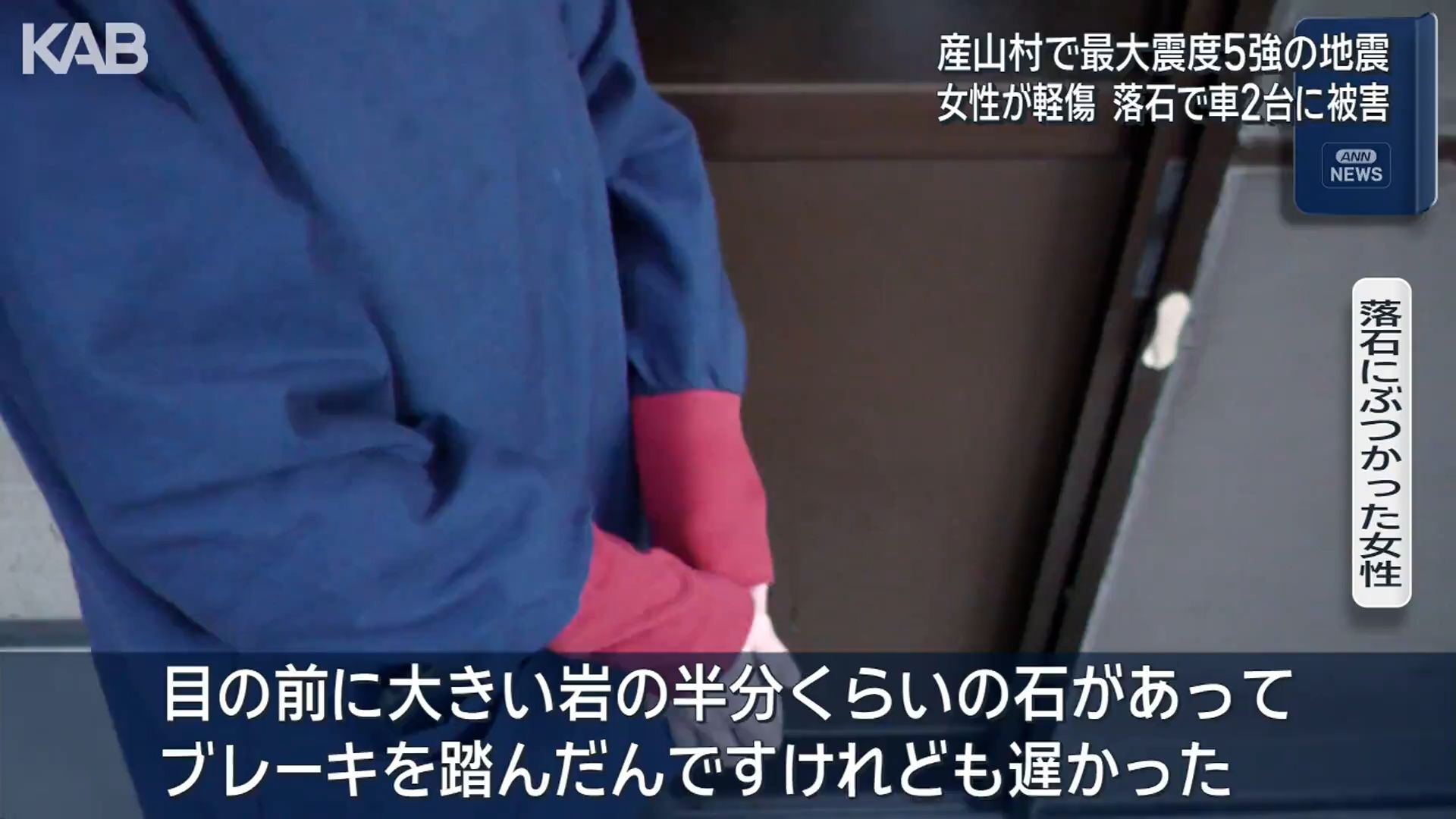 「対向車線にある大きな岩の方に目が行って、岩が落ちているから、怖いな気を付けなきゃって思ったら、目の前に大きいのの半分ぐらいの石があって、ブレーキを踏んだんですけれども、遅かったです」