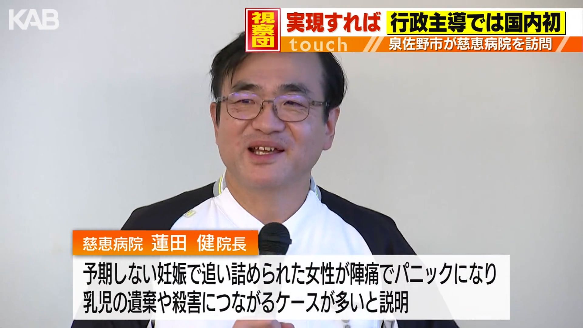 いわゆる「赤ちゃんポスト」の設置や内密出産の受け入れ開始を目指す大阪府泉佐野市が熊本市の慈恵病院を視察に訪れました。