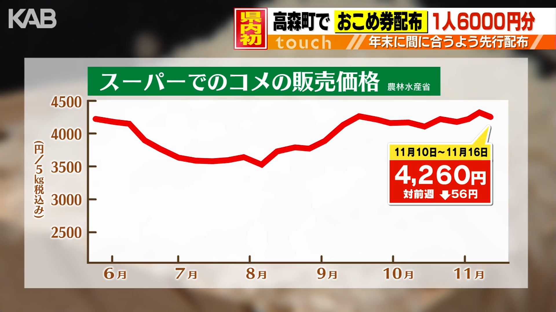 こうした経済対策を含む国の補正予算の閣議決定はこれからですが、高森町では年末に間に合うようにと、おこめ券の先行配布を決めました。利用期間は12月1日から来年3月末までで、希望者1人あたり毎月1500円分を、紙か電子クーポンで配布します。事業費はおこめ券の制作費100万円を含む2800万円です。