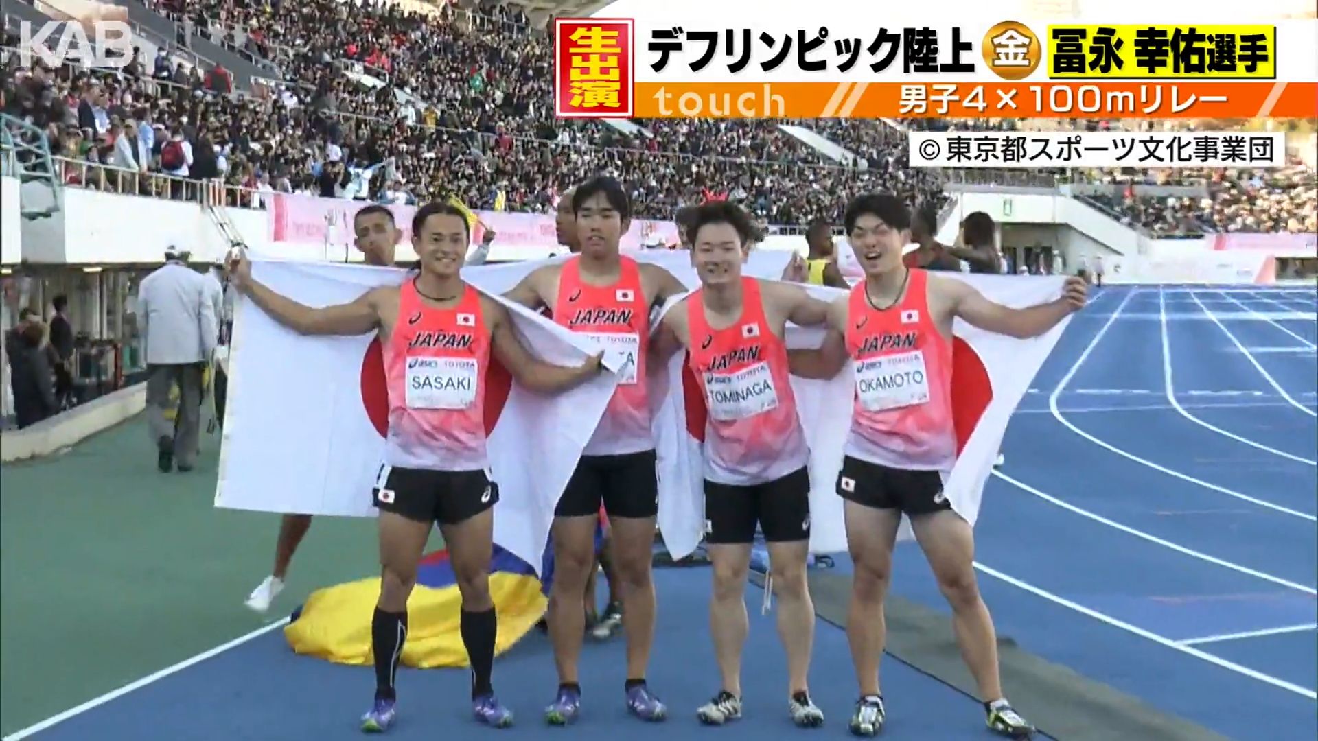 26日に閉幕した聴覚に障がいがあるアスリートが参加する東京2025デフリンピック。陸上男子4×100mリレーで金メダルを獲得した熊本学園大学4年の冨永幸佑選手がKABの番組に出演し、喜びを語りました。