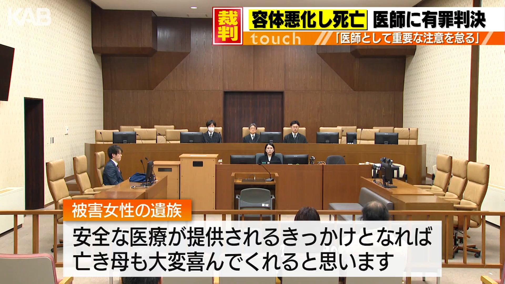 被害女性の遺族は「今回の判決が、医師個人の問題で終わることなく、安全な医療が提供されるきっかけとなれば、亡き母も大変喜んでくれると思います」とコメントしています。