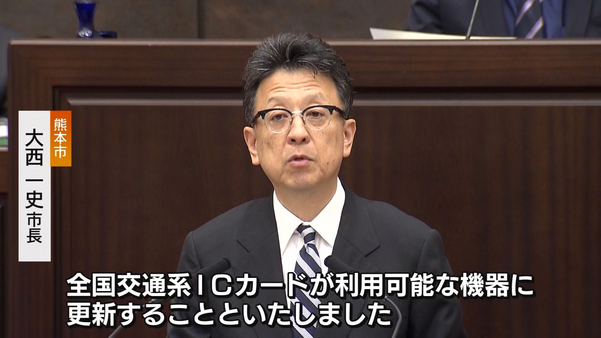熊本市電の決済手段について、熊本市は機器更新に高額な費用が必要なことを理由に全国交通系ICカードでの決済を来年3月末で廃止する方針を示していましたが、一転して、引き続き利用できるようにすると、28日に開会した市議会で大西市長が明らかにしました。