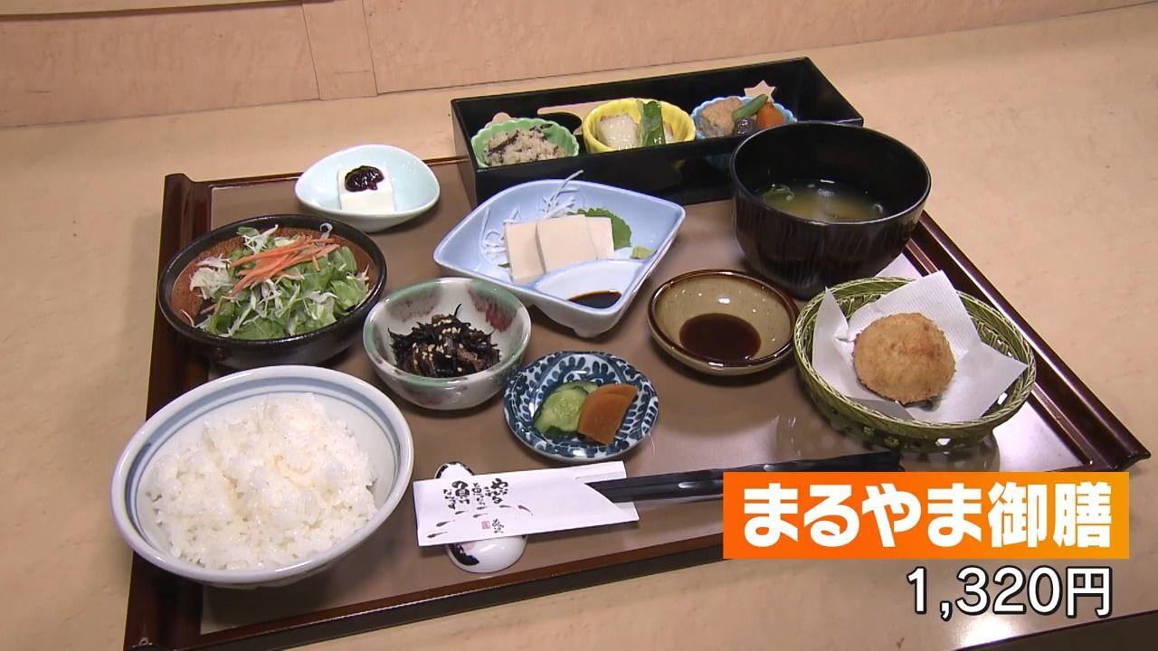 ごまどうふやおから、揚げ出し豆腐など、豆腐料理が盛りだくさんの御膳。特に人気なのが、豆腐のチーズコロッケです。豆腐と鶏ミンチのタネでチーズを包み、衣をつけて揚げていて、中からチーズがとろけ出ます。