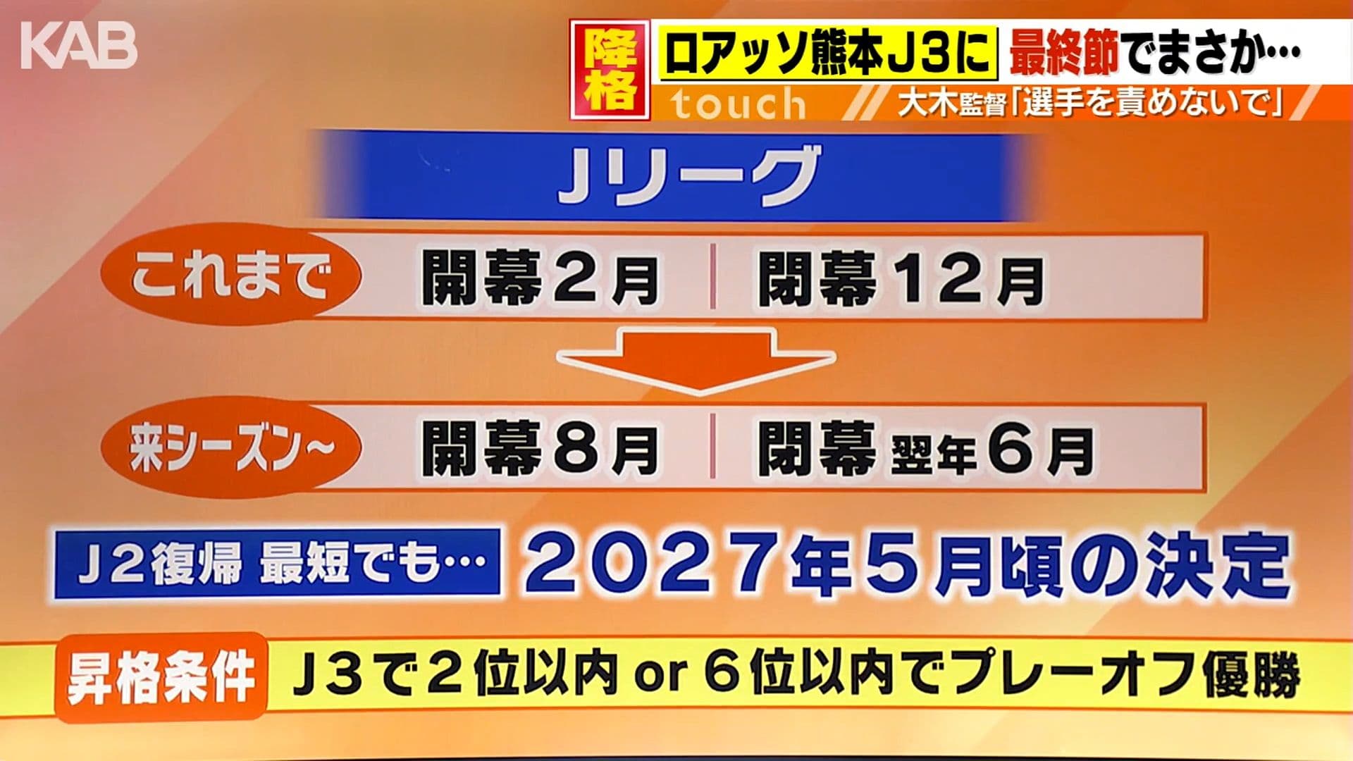 ロアッソ熊本J3降格…サポーター涙「昇格して戻ってこい」