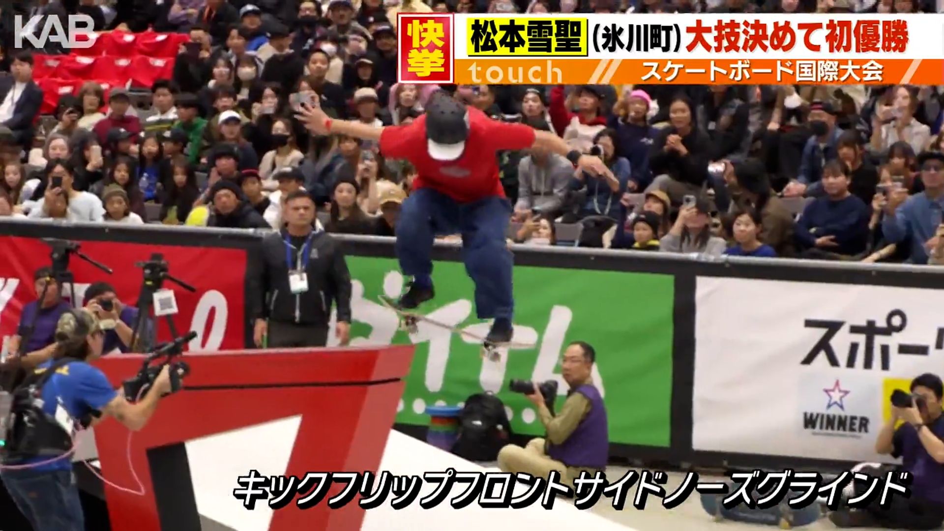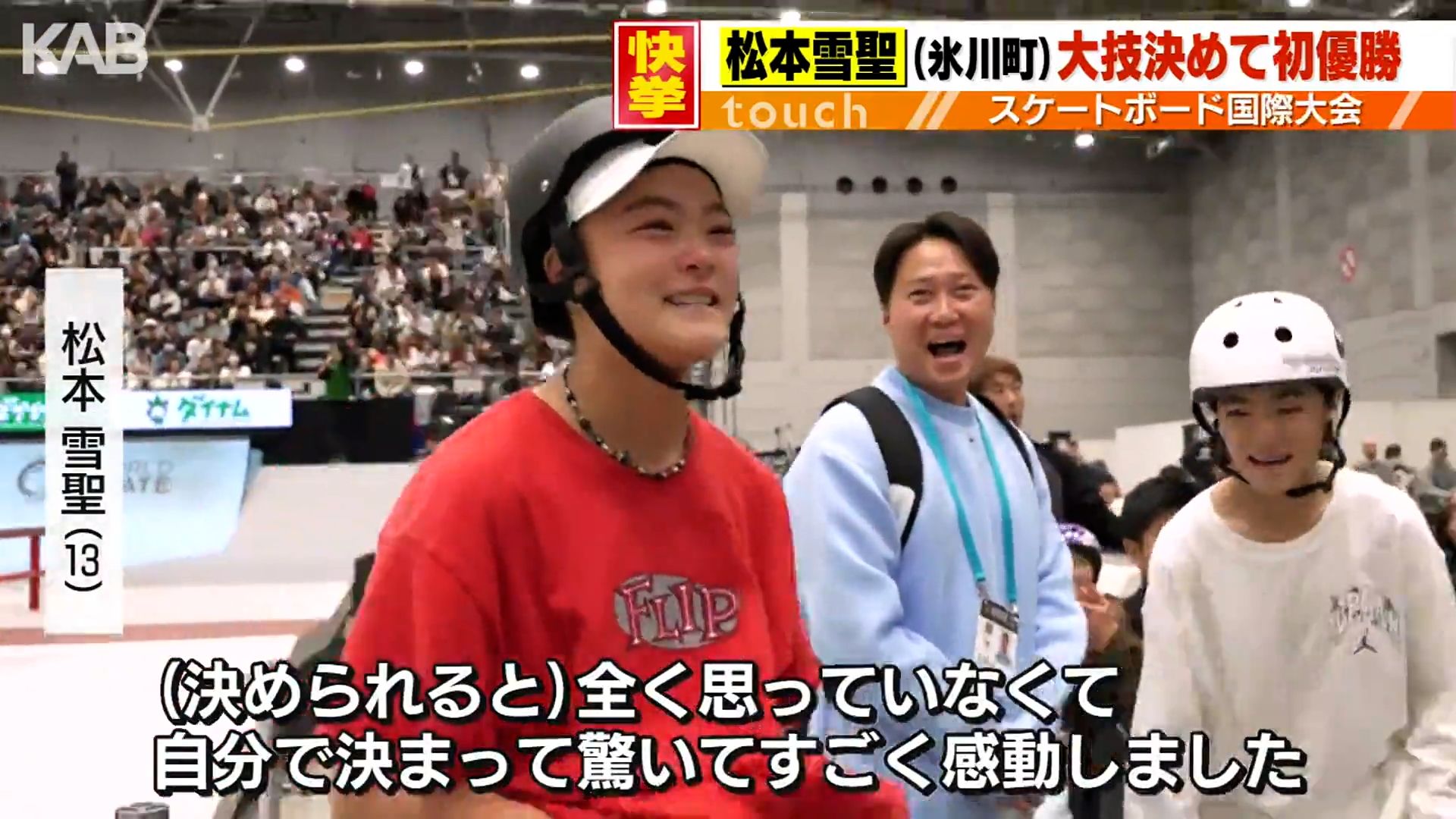 13歳で世界の頂点です。スケートボードの国際大会で熊本県氷川町出身の松本雪聖選手が初優勝を飾りました。