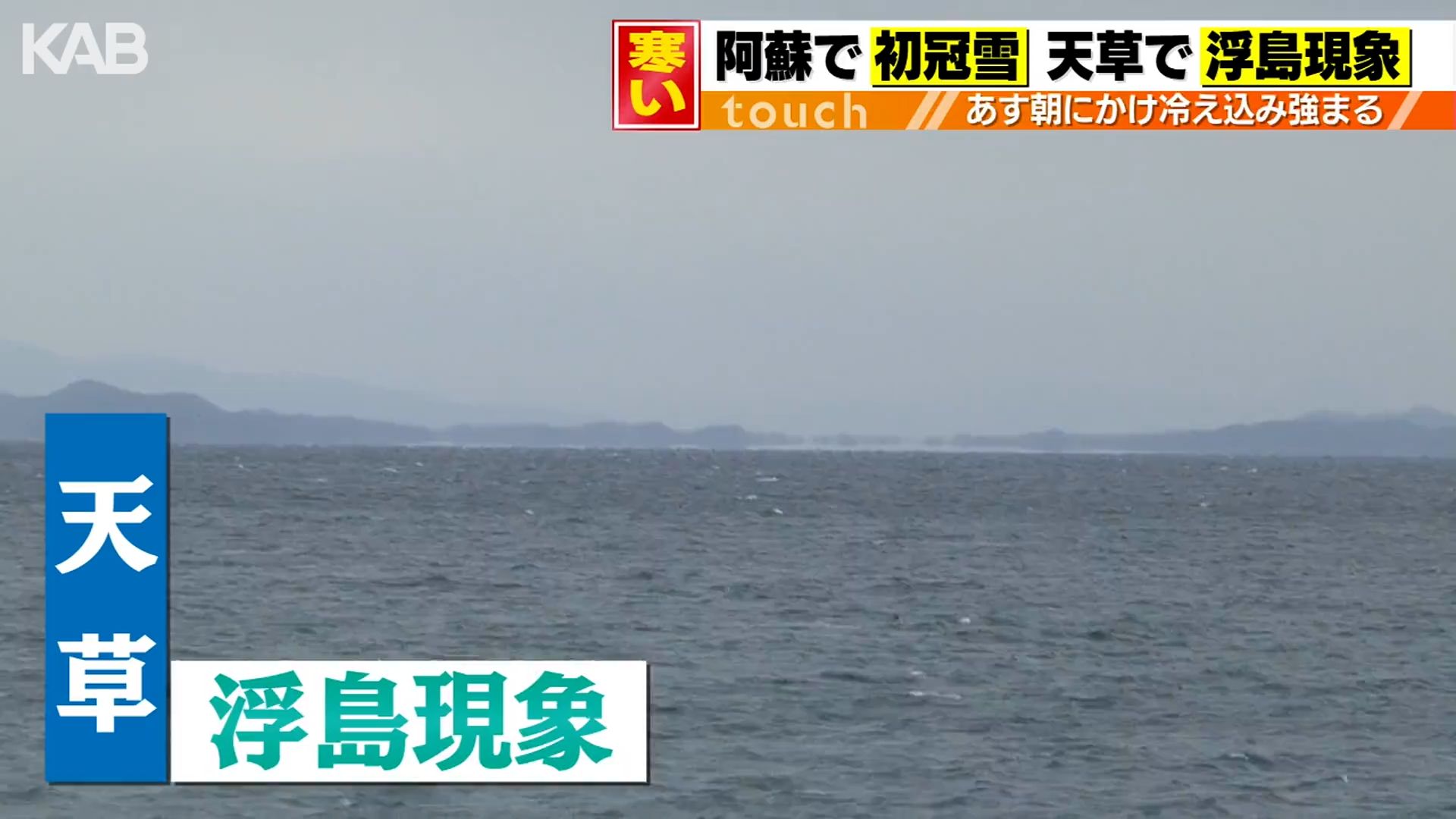 天草では遠くの島や船が浮かんで見える「浮島現象」が。冬の風物詩で、大気が冷え込み、海面との温度差で発生する蜃気楼の一種です。