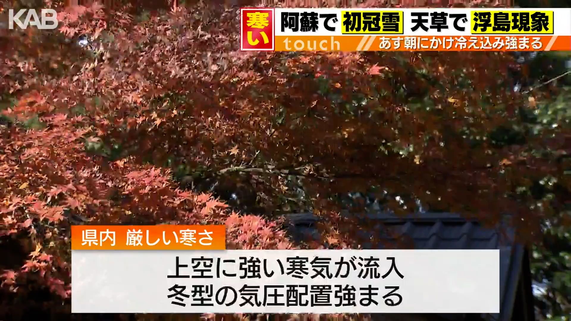 今シーズン一番の寒気が襲来した3日、熊本県の阿蘇では高岳が「初冠雪」となりました。平年より13日遅い観測です。