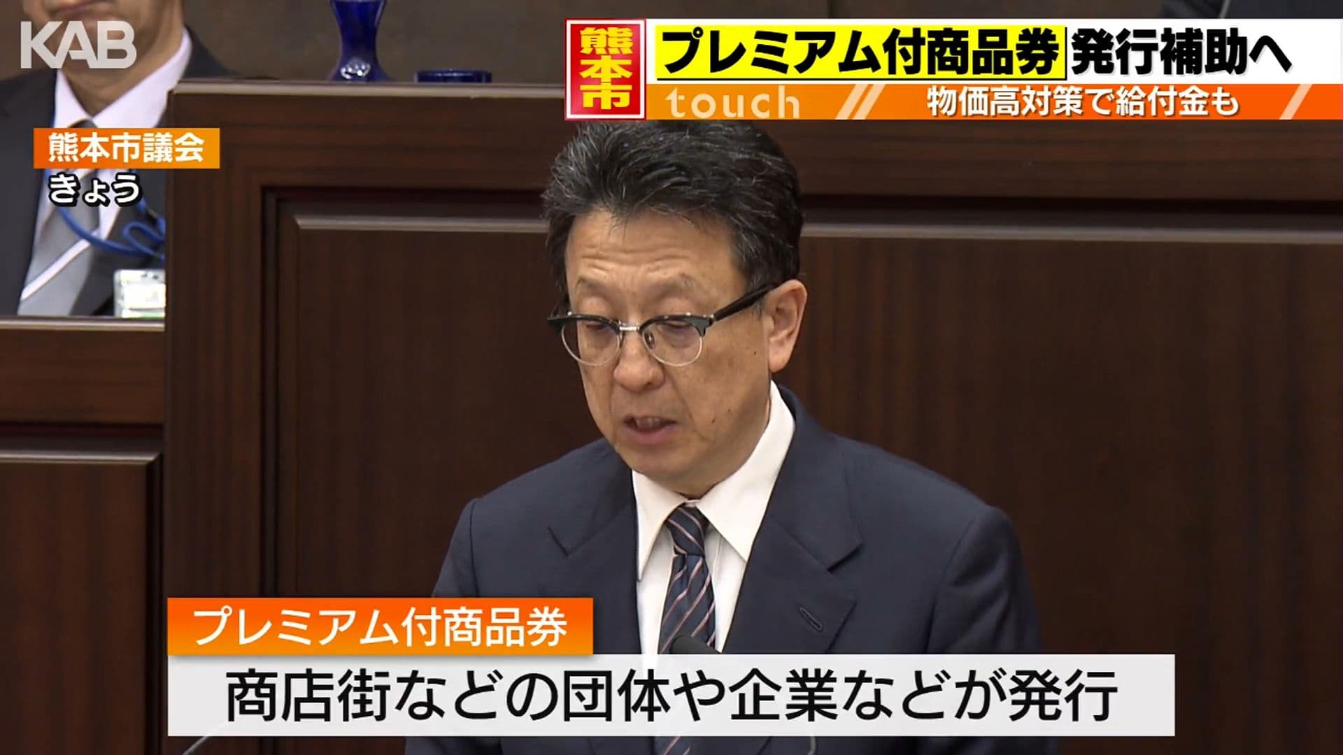 プレミアム商品券40%補助、子育て世帯へ1人2万円給付 熊本市が物価高対策で追加提案