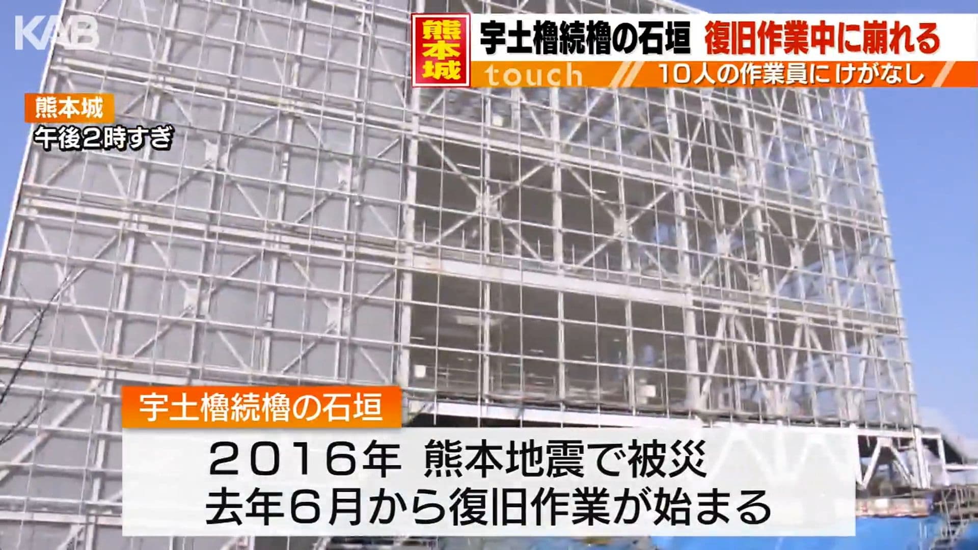 解体中の熊本城の石垣が崩れる 復旧作業を中断し対策を検討