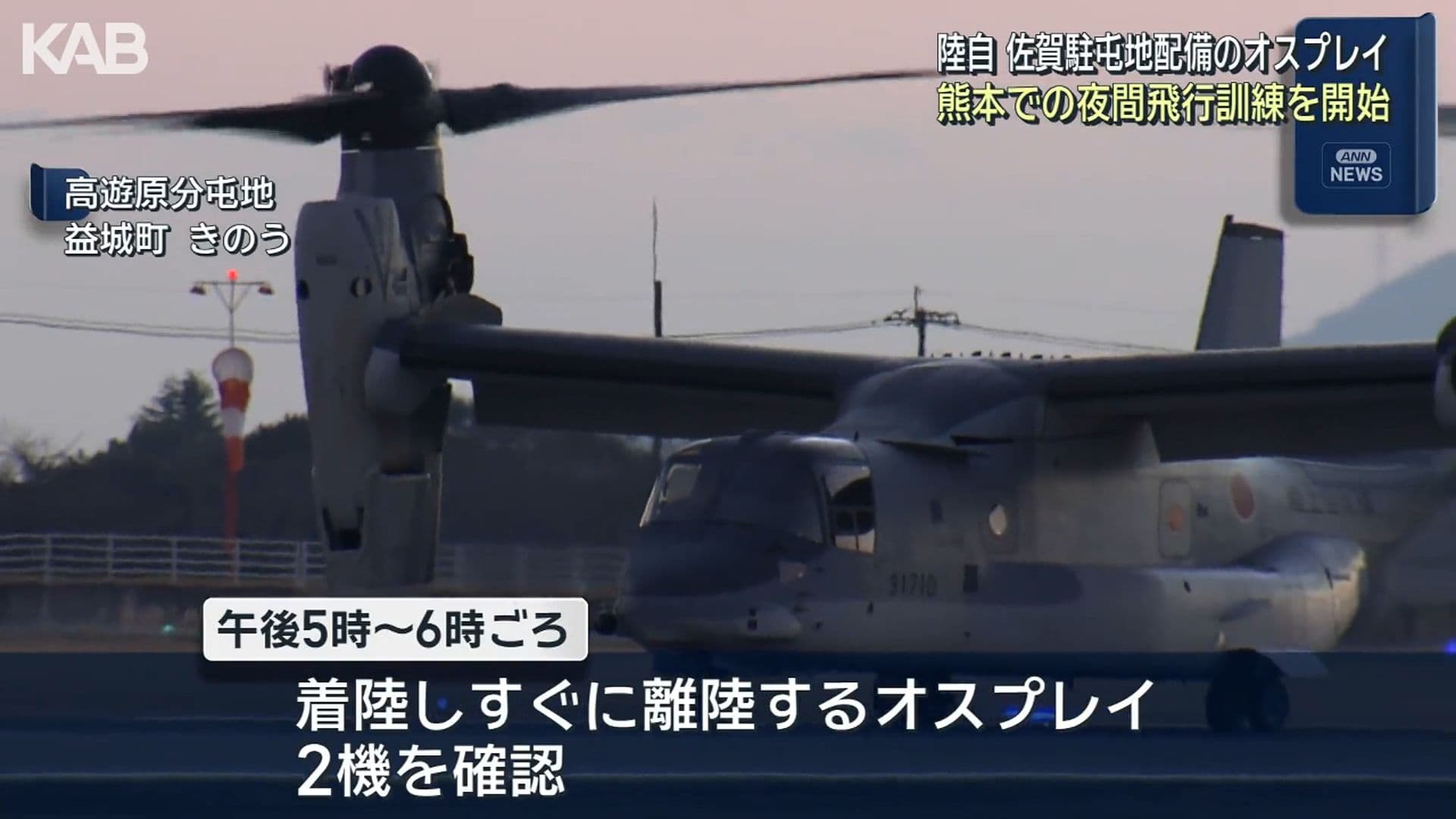 オスプレイが熊本でも夜間訓練開始 高遊原分屯地・大矢野原演習場など九州の11施設周辺