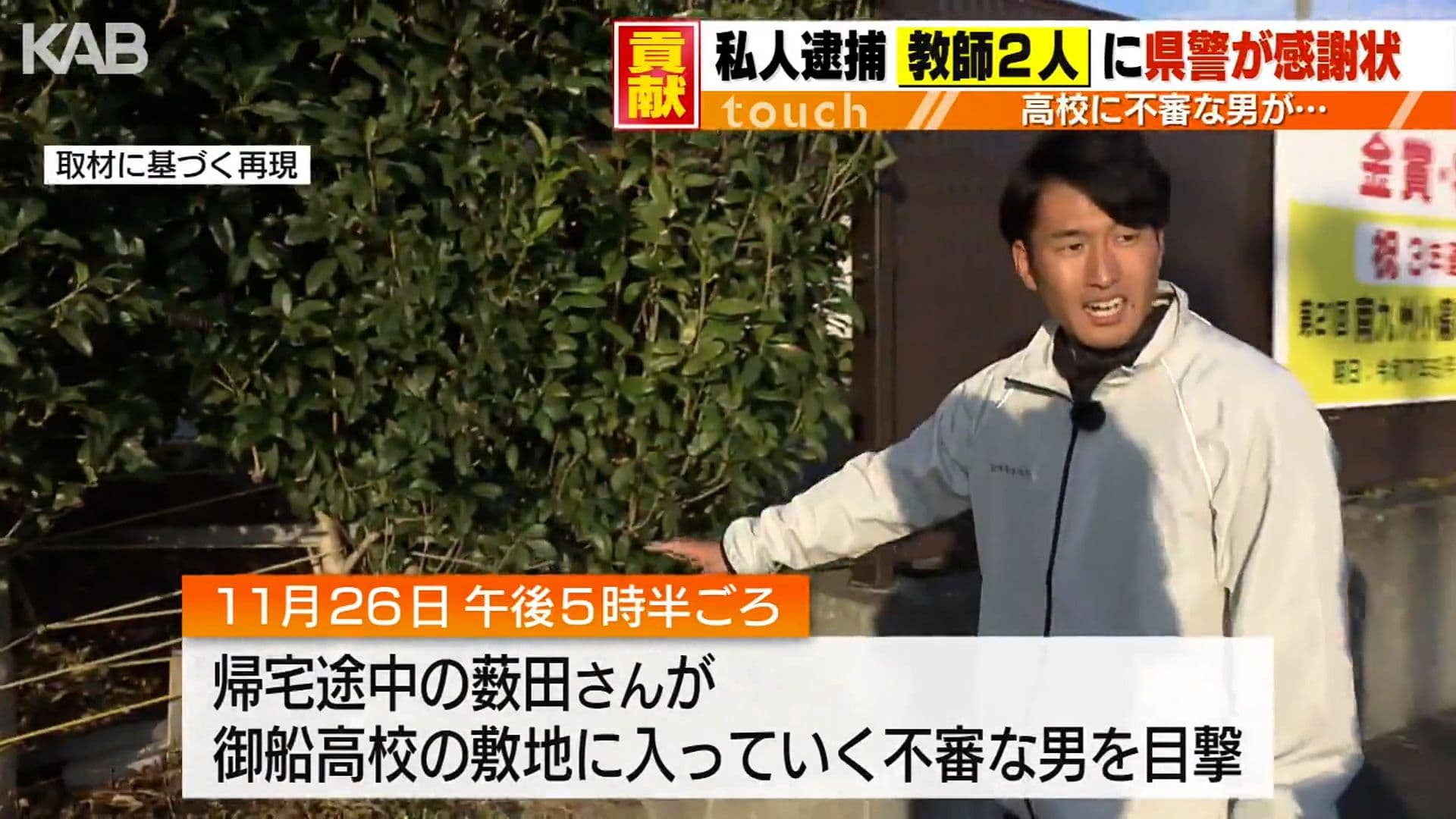 高校に不審な男が侵入…私人逮捕の教師2人に警察から感謝状
