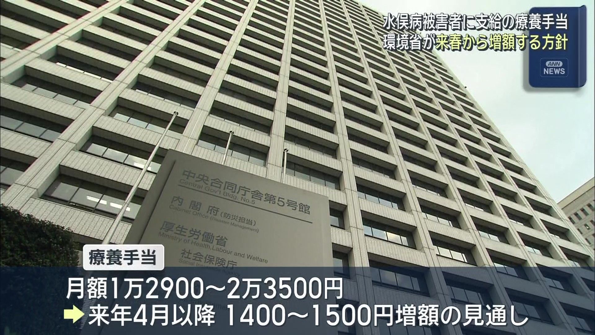 療養手当は現在、1995年の政治解決や2009年の特別措置法で救済対象となったおよそ3万人に支給されていて、月額は1万2900円から2万3500円です。来年4月以降、これが1400円から1500円増額される見通しです。