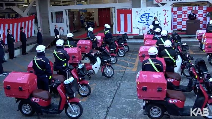 年賀状の配達開始「真心込めて」 今年生まれた女の子も出迎え