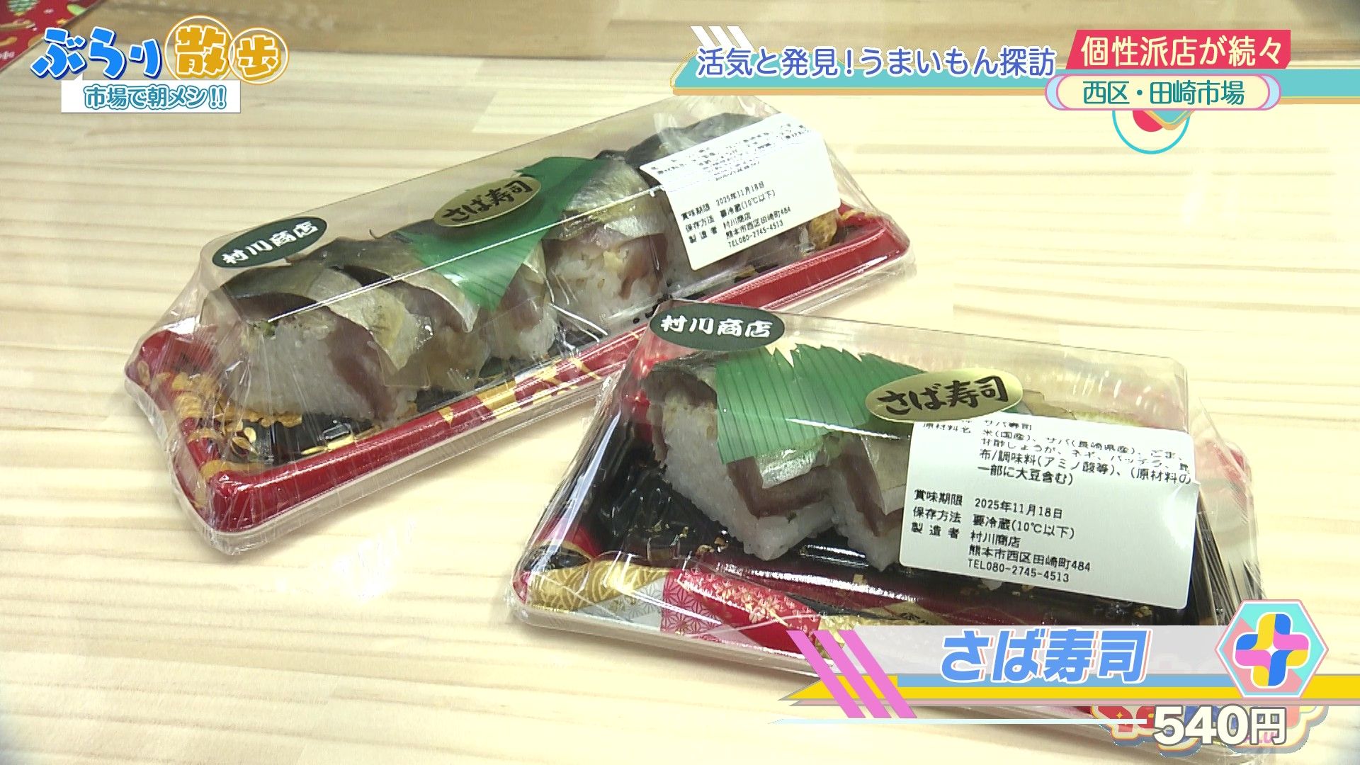 田崎市場内のえびす会商店街にある「村川商店」。朝から多くのお客さんが訪れています。寿司職人の村川さんが作るさば寿司やサラダ巻き、サンドイッチなどが朝5時から並びます。