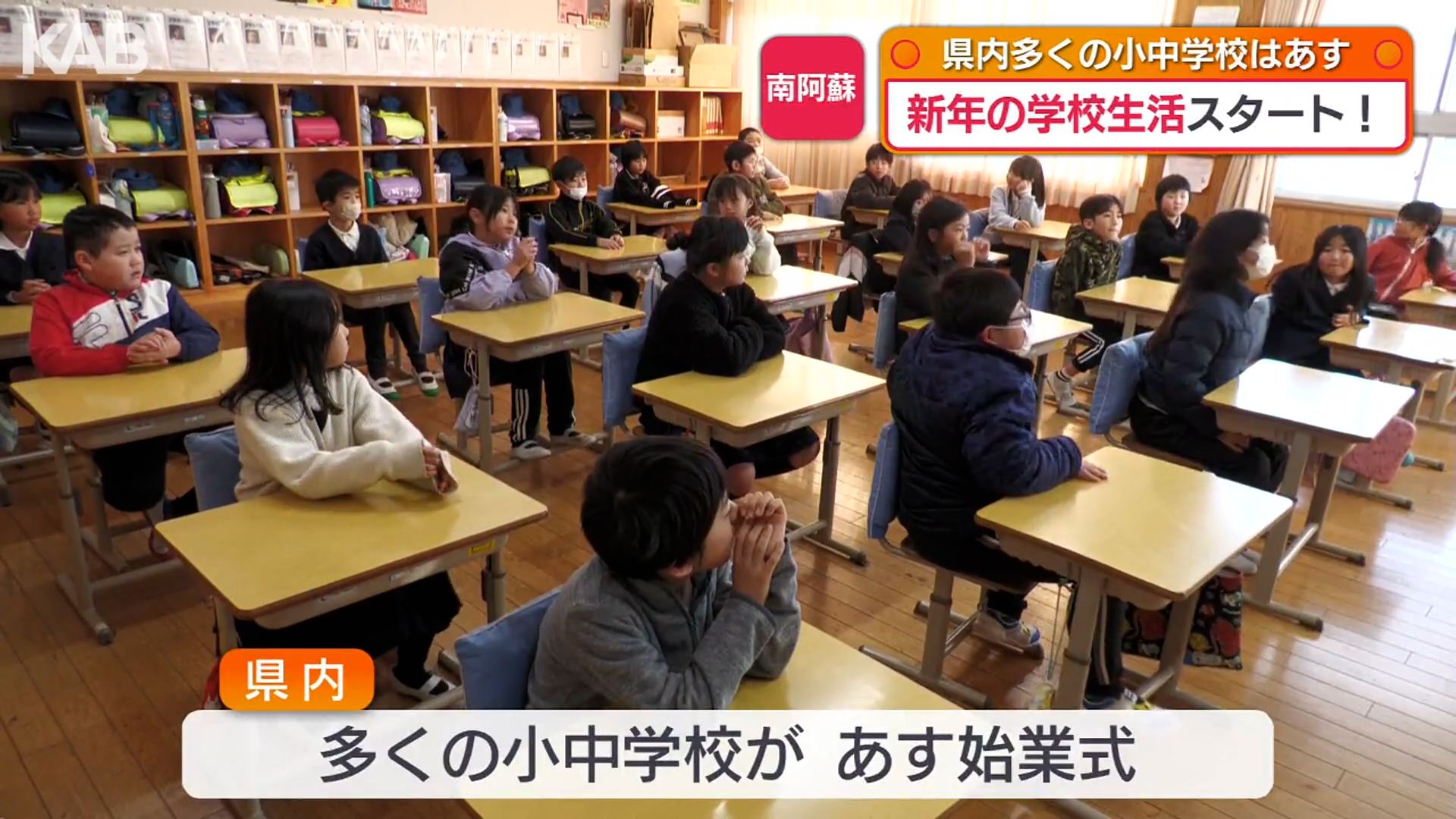 新たな年の学校生活がスタート。熊本県南阿蘇村では、小中学校が3学期の始業式を迎え、白水小学校にも、児童およそ130人が元気良く登校しました。