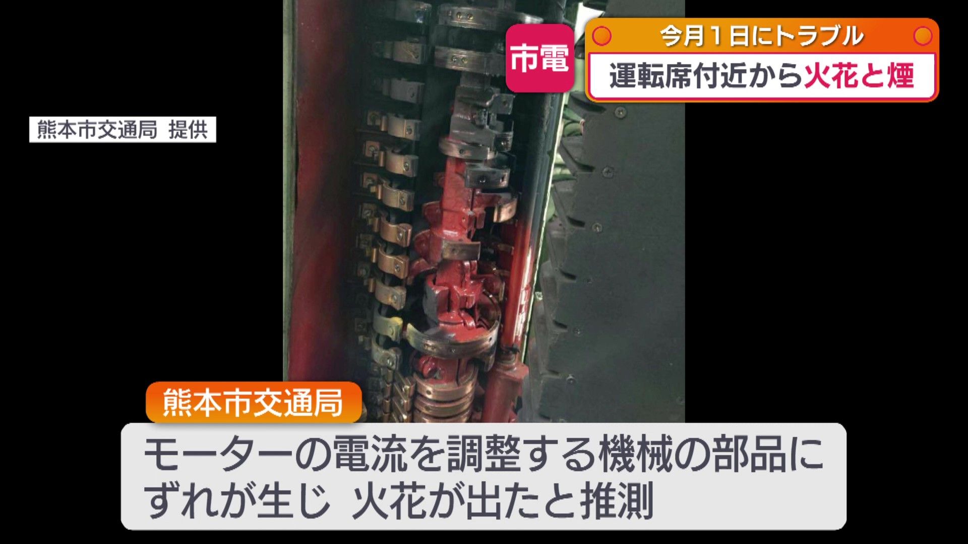 原因については、市電のモーターの電流を調整する機械の部品にずれが生じ、火花と煙が出たとみています。
