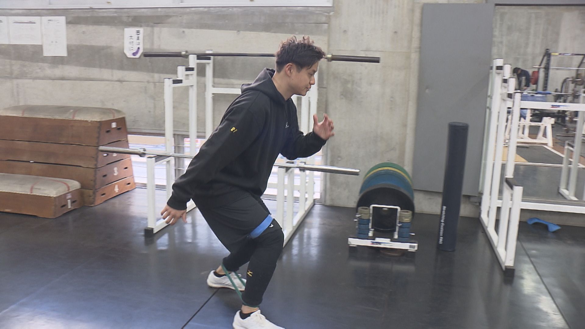 チューブを使った地道なトレーニングも含め約3時間。お尻や腰回りを徹底的に鍛え上げ、下半身の土台を作ります。シーズンを通して戦い抜くには、オフシーズンの過ごし方が大事だといいます。