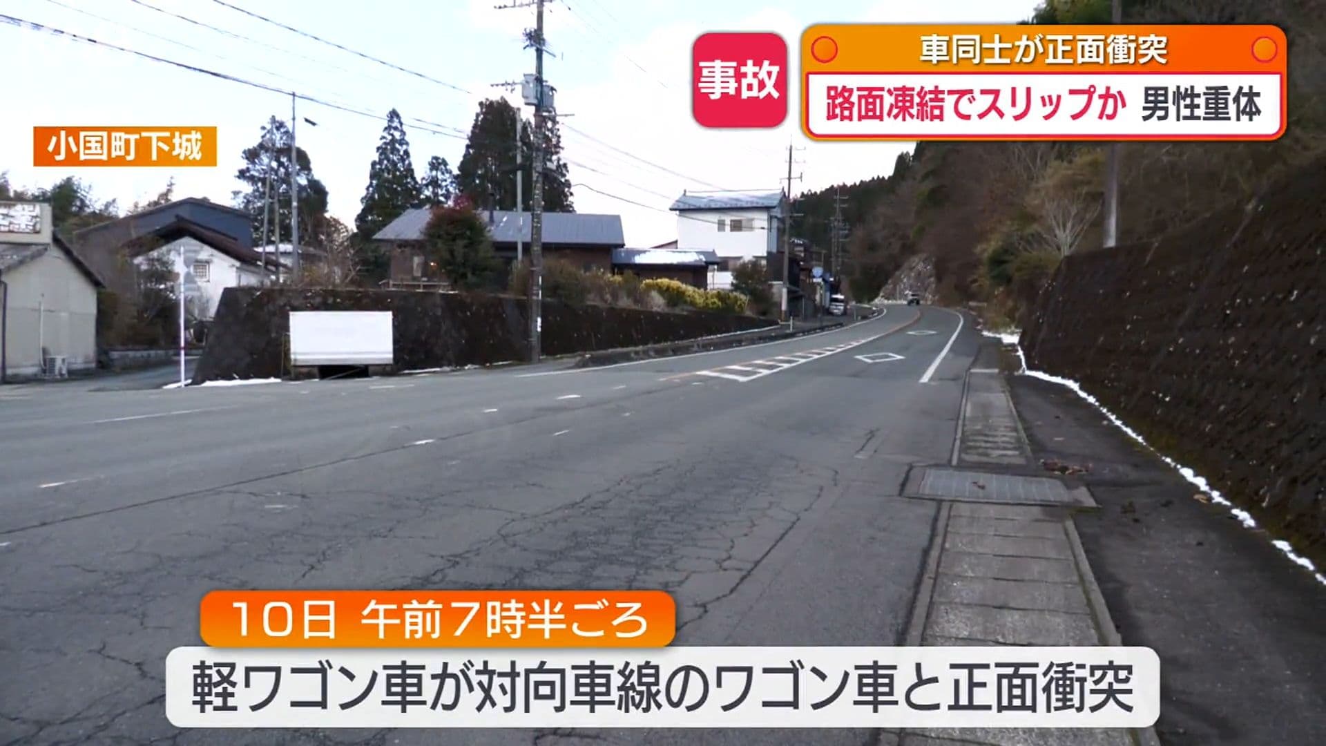 路面凍結によるスリップか 正面衝突で70代男性が意識不明の重体
