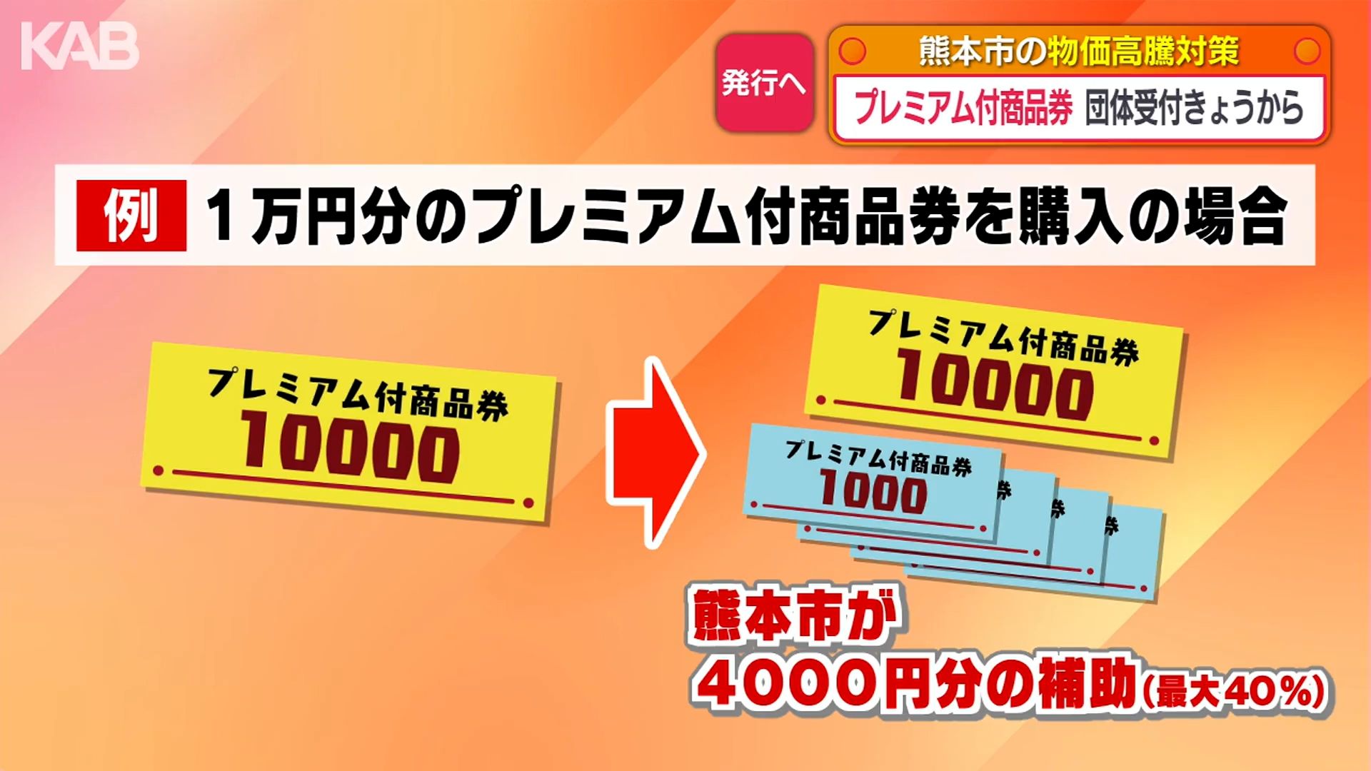 プレミアム付商品券は、熊本市の商店街などの団体や企業が発行するもので、今回のプレミアム率は過去最高の40%です。