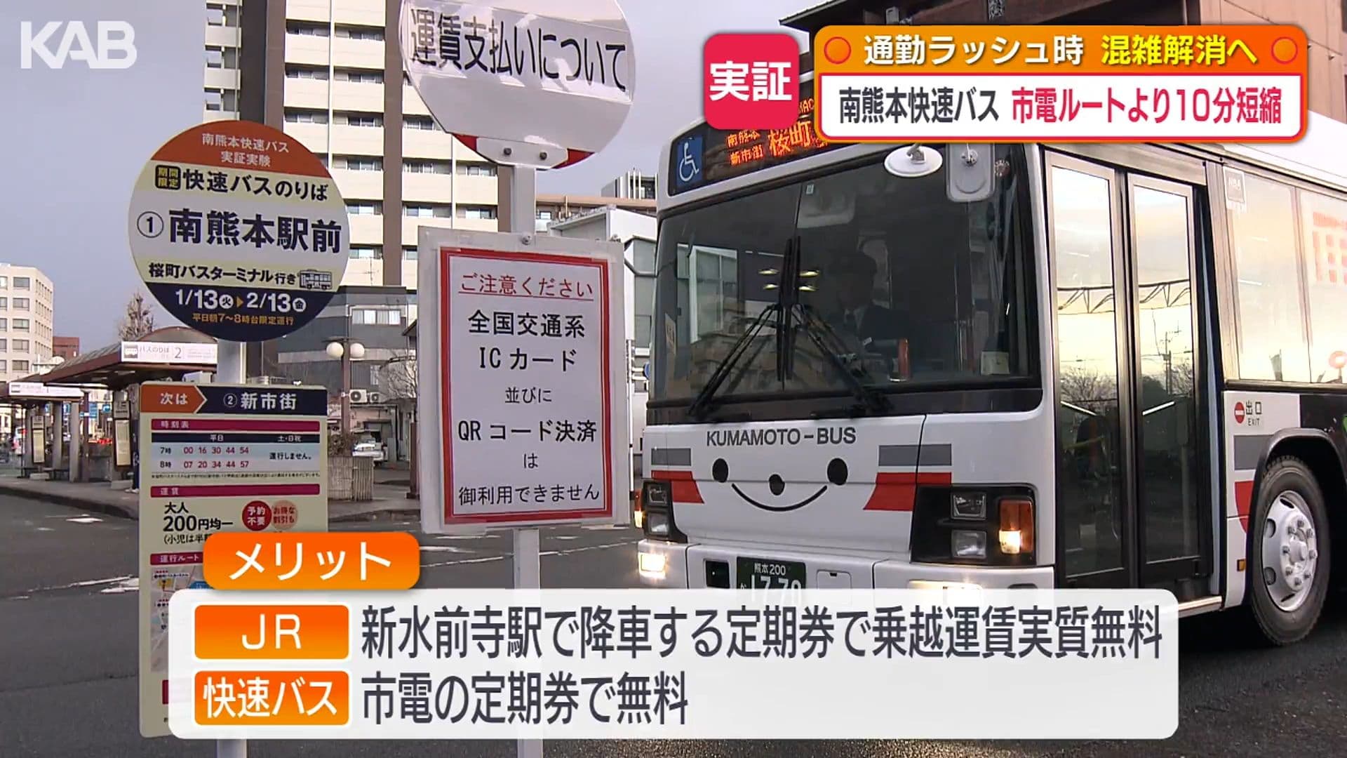 市電ルートより10分短縮!?南熊本快速バス 2月13日まで実証