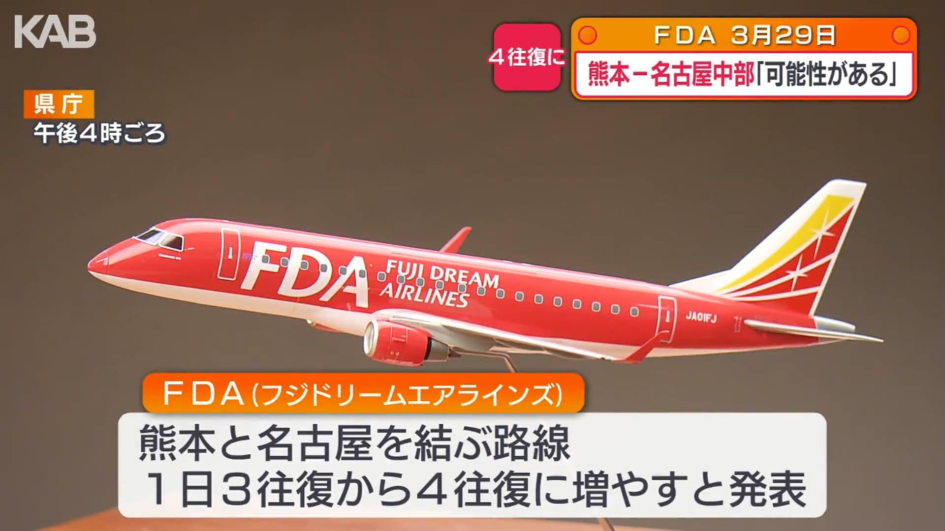 熊本ー名古屋中部線3月29日から運航 FDA「ビジネスも観光も可能性ある」
